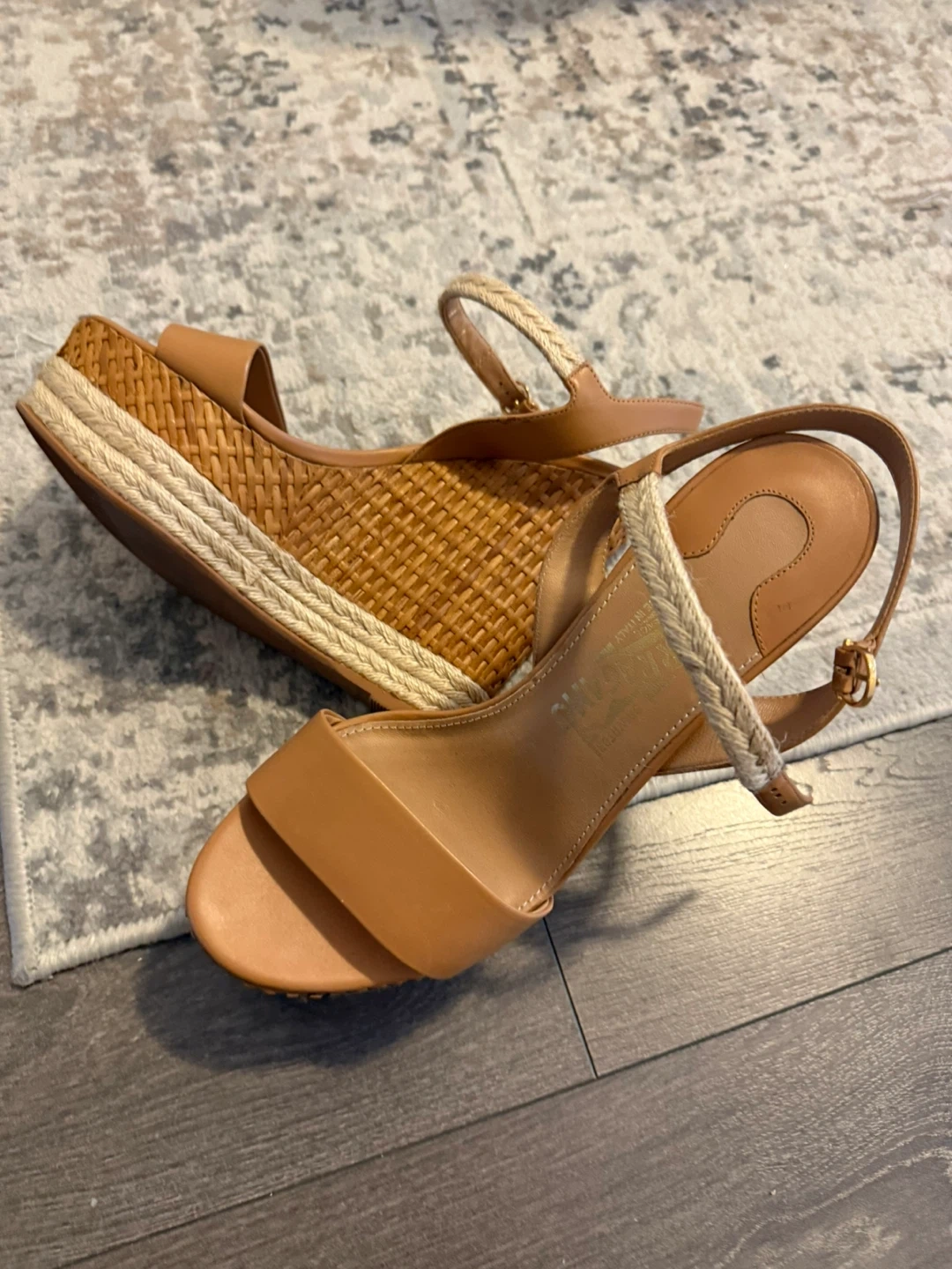 Selling a pair of Salvatore Ferragamo wedge sandals. They're a size 39 and in excellent condition! The wedges have a woven texture and a cute espadrille trim. Perfect for summer!