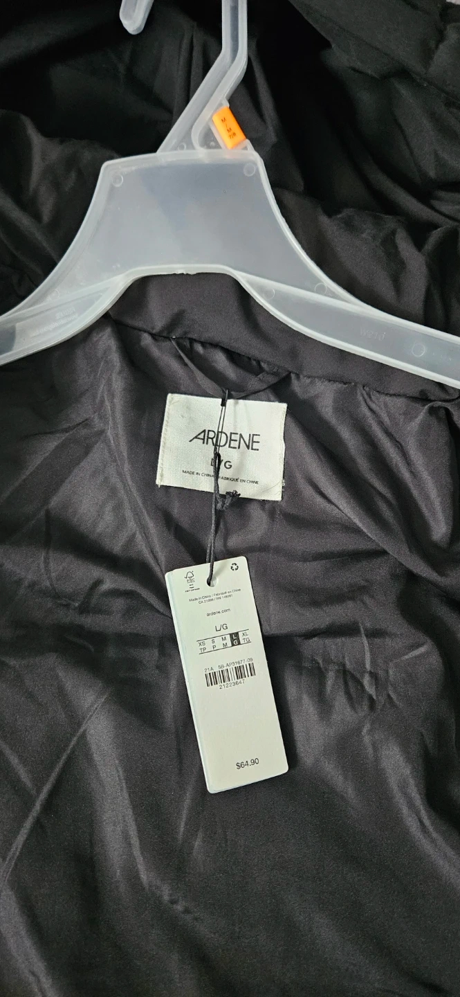 Here's a black puffer jacket from Ardene in size L/G. Brand new. Bought and realized it was too puffy for me.