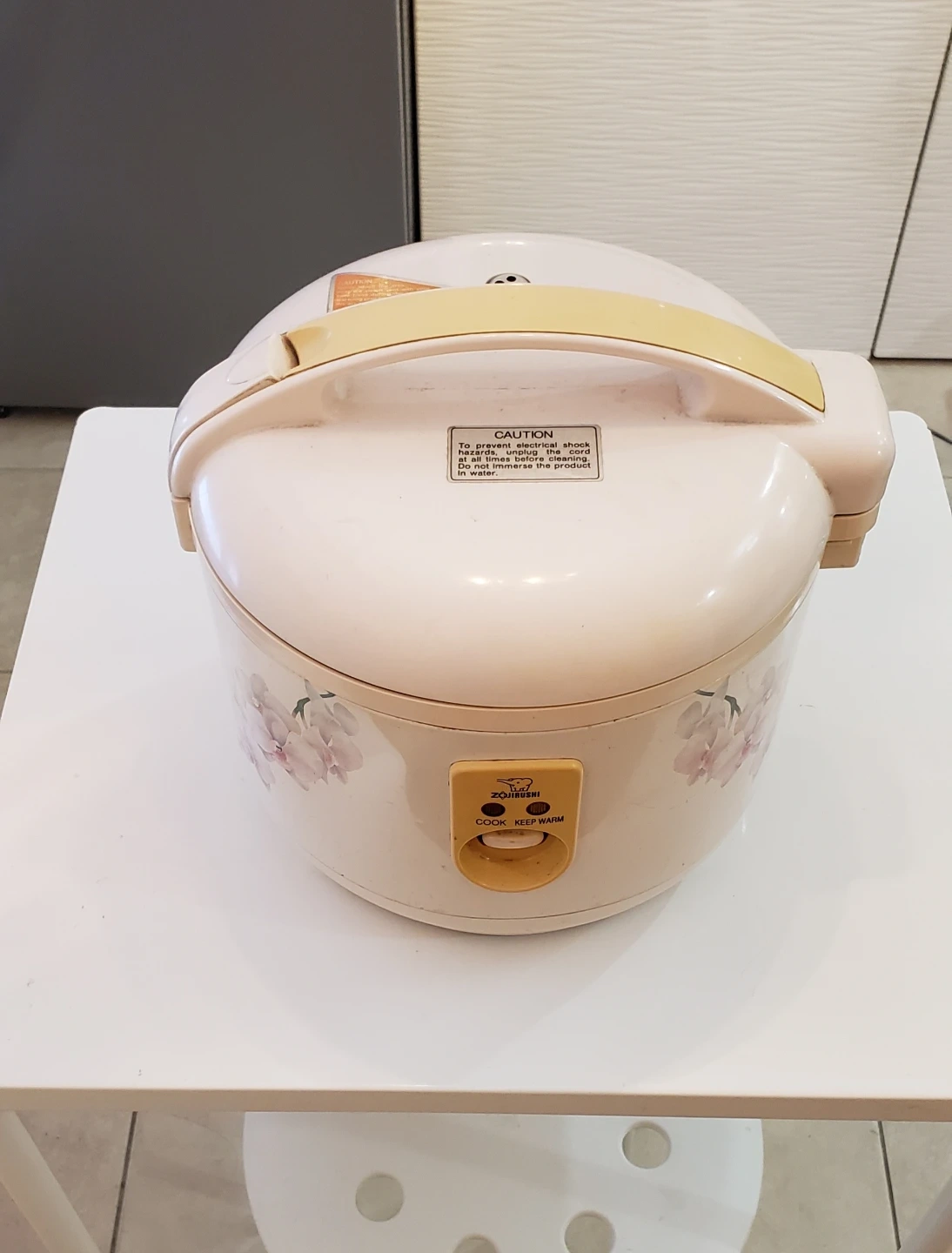 It has a cook and keep warm function. Inner pot shows signs of use.