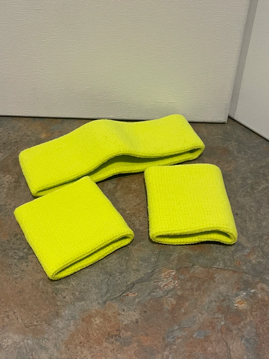 Brand new, never used, size small. Here's a set of neon yellow athletic accessories! It includes a headband and two wristbands. They are in great condition and ready for your next workout or sports activity
