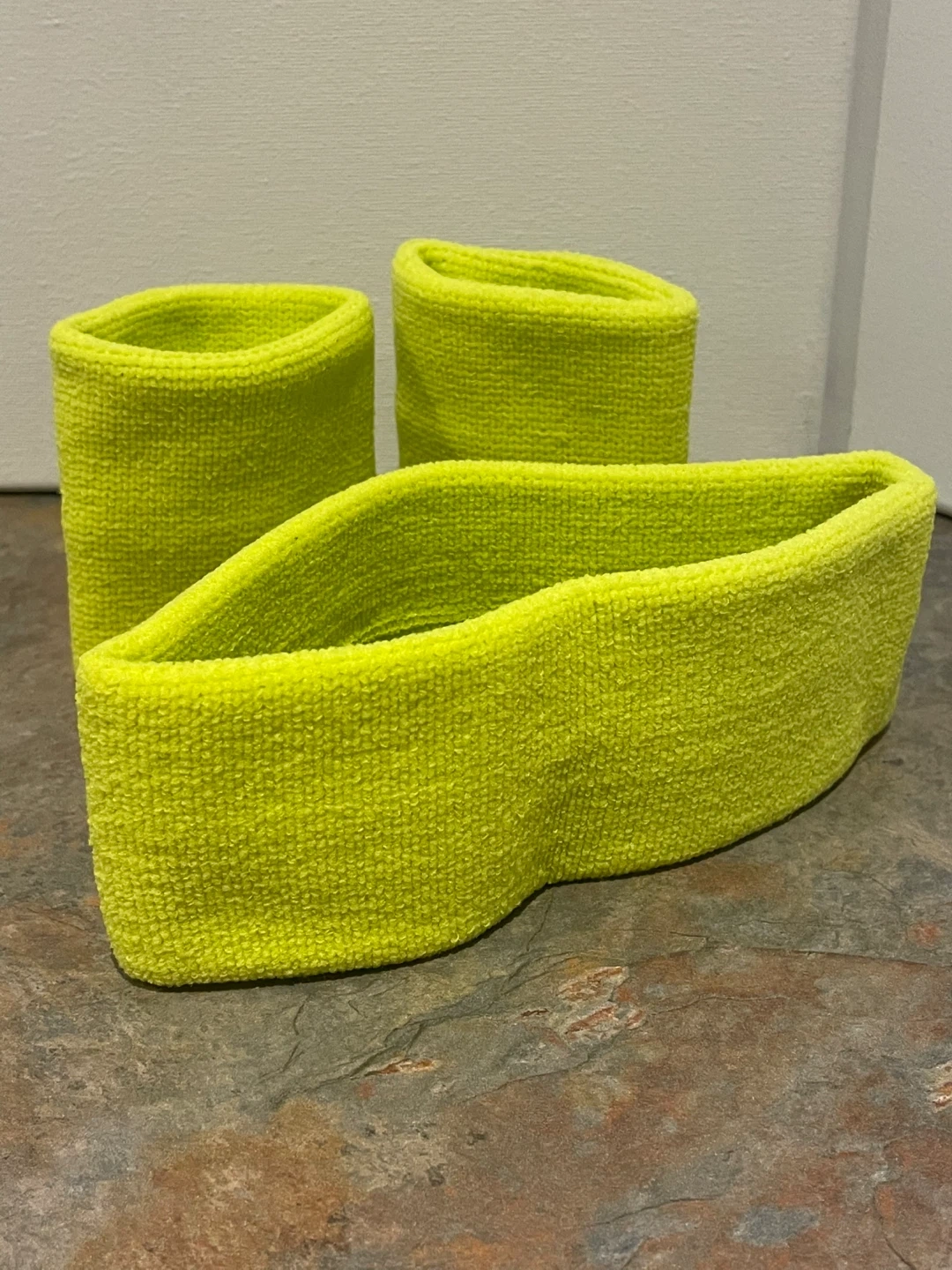 Brand new, never used, size small. Here's a set of neon yellow athletic accessories! It includes a headband and two wristbands. They are in great condition and ready for your next workout or sports activity
