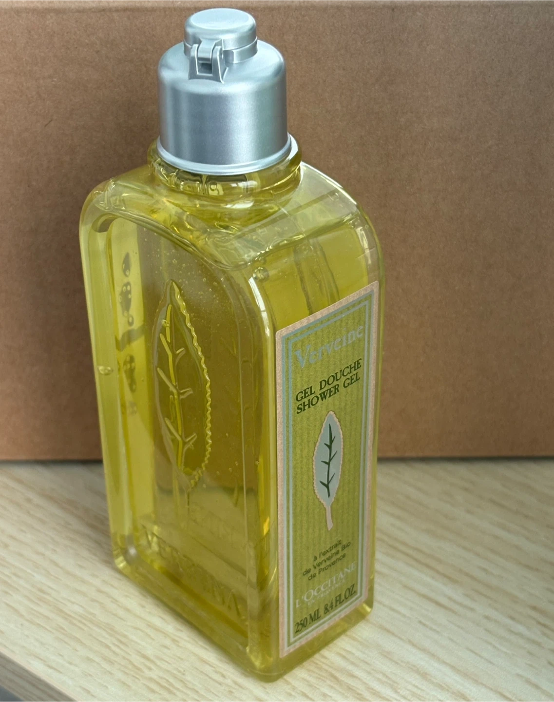 A brand new bottle of L'Occitane Verveine Shower Gel. It contains extract of organic Verbena from Provence.