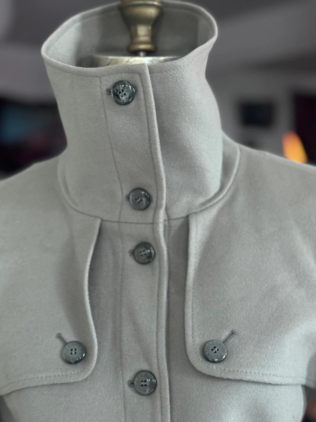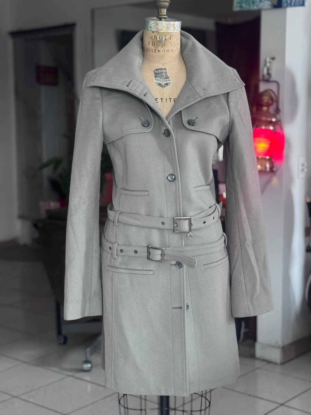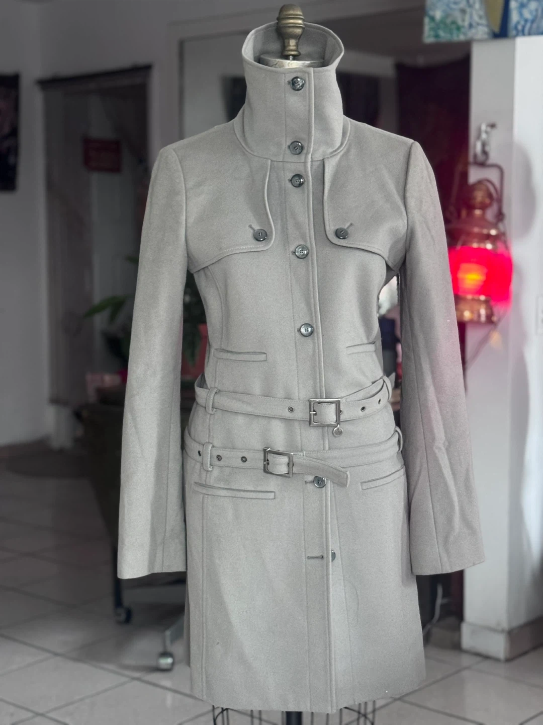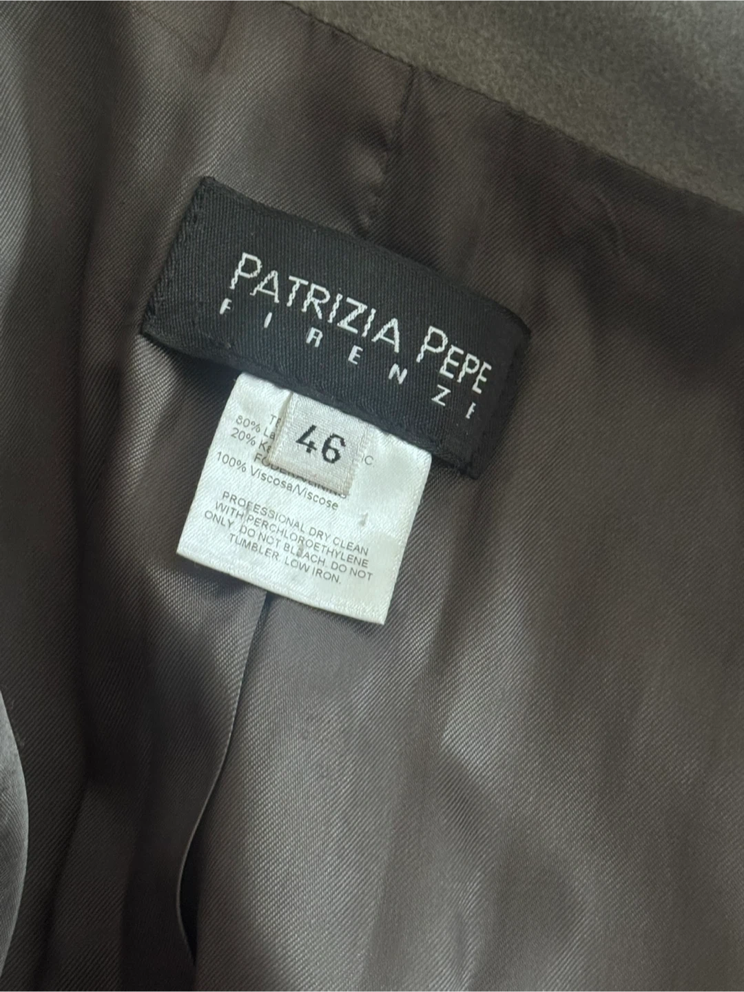 Selling a stylish Patrizia Pepe Firenze coat in size 46. The coat features a unique design with button details and a belted waist. Size run small