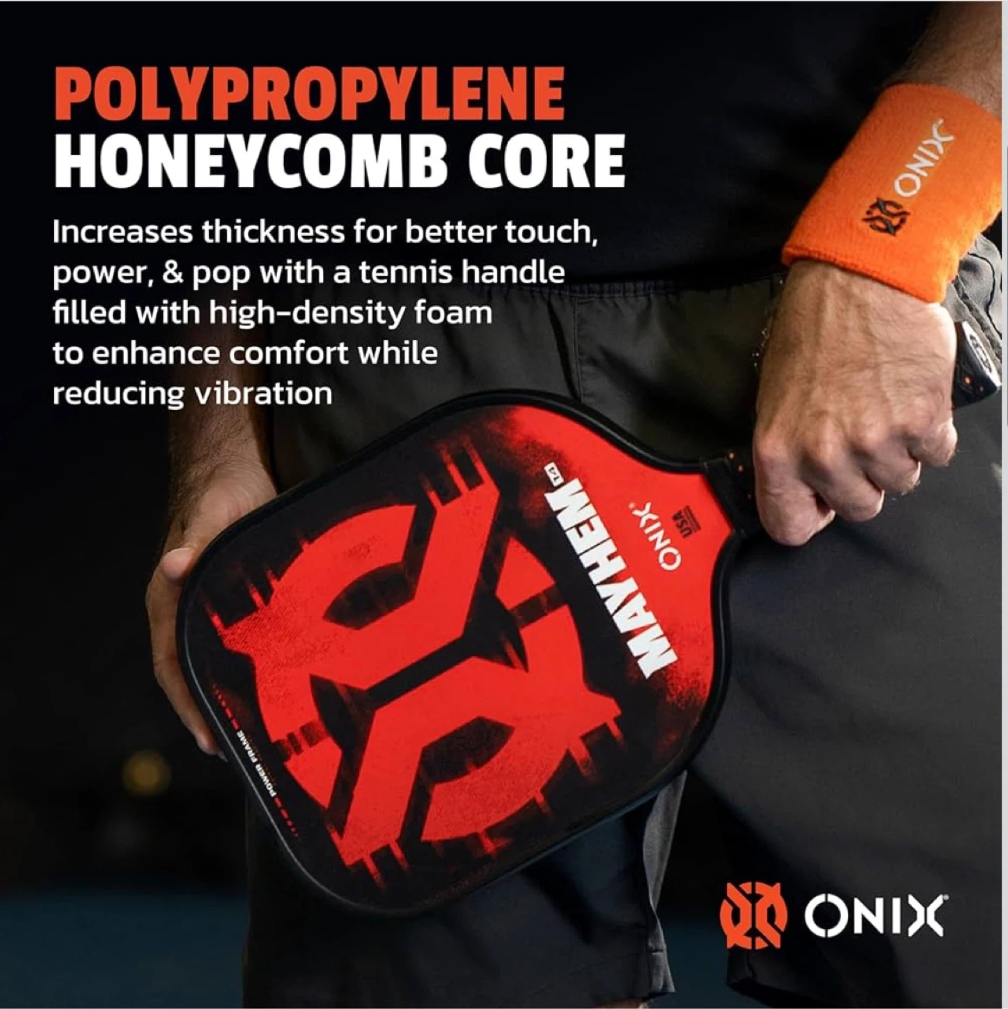 Looking to up your pickleball game? I'm selling an ONIX Mayhem pickleball paddle. It has a polypropylene honeycomb core for better touch, power, and pop. The handle is filled with high-density foam to enhance comfort and reduce vibration. It also features patented ThermoFused technology.