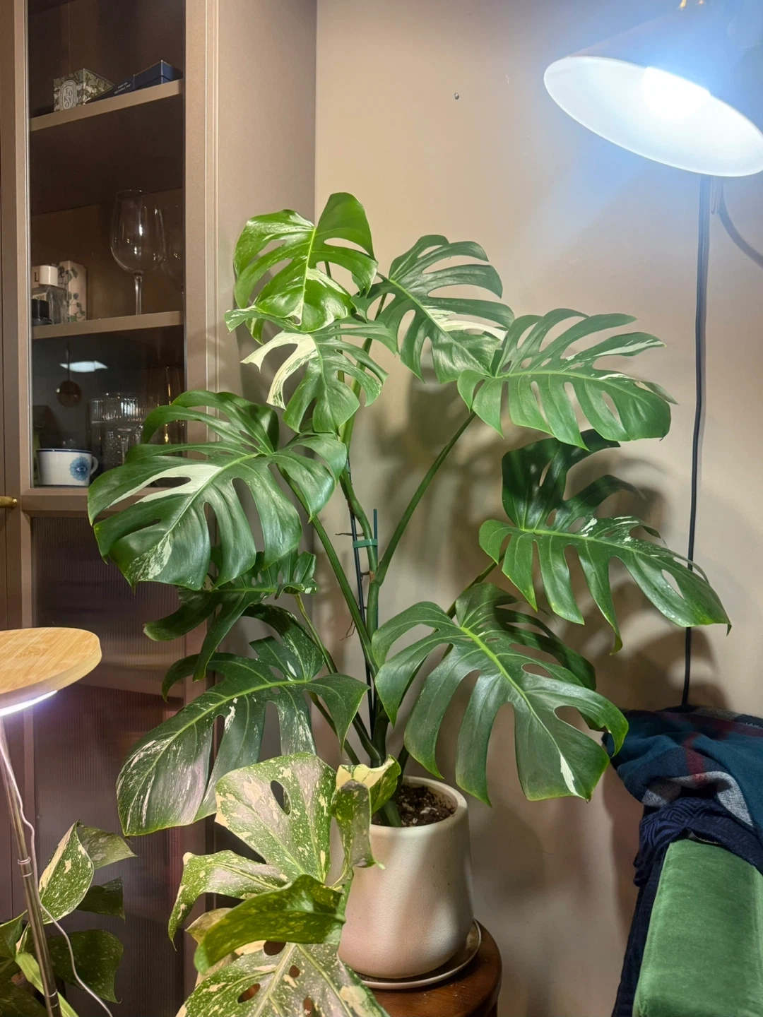 a beautiful 42” tall Monstera Albo Variegata plant! It's a stunning addition to any indoor garden with its unique variegated leaves. This plant is healthy, large size and well-cared for, ready to bring a touch of the tropics to your home. 8” white planter included