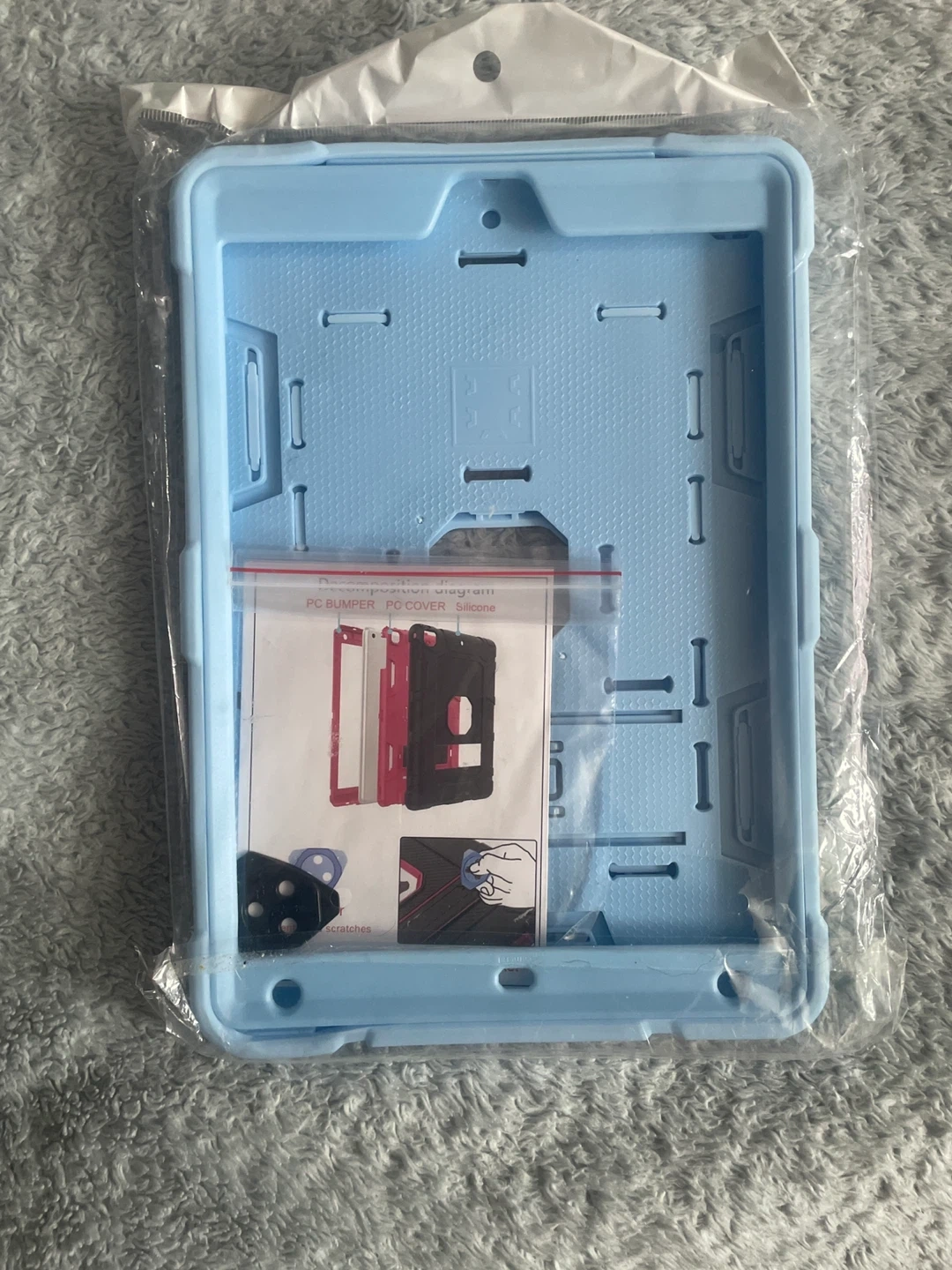 Selling a brand new light blue tablet case! It's still in the original packaging and ready to protect your tablet from bumps and scratches. Comes with all the components shown in the diagram.
