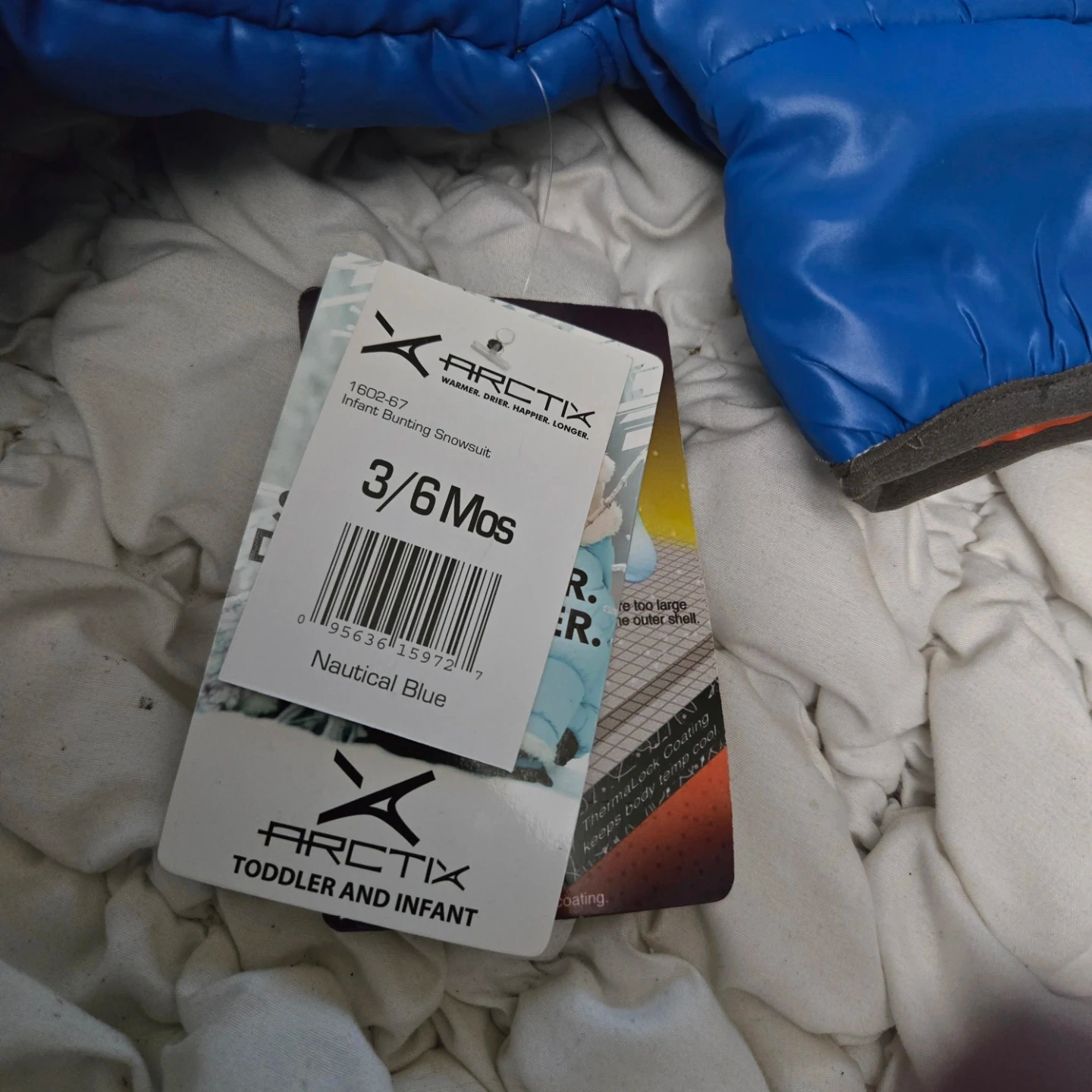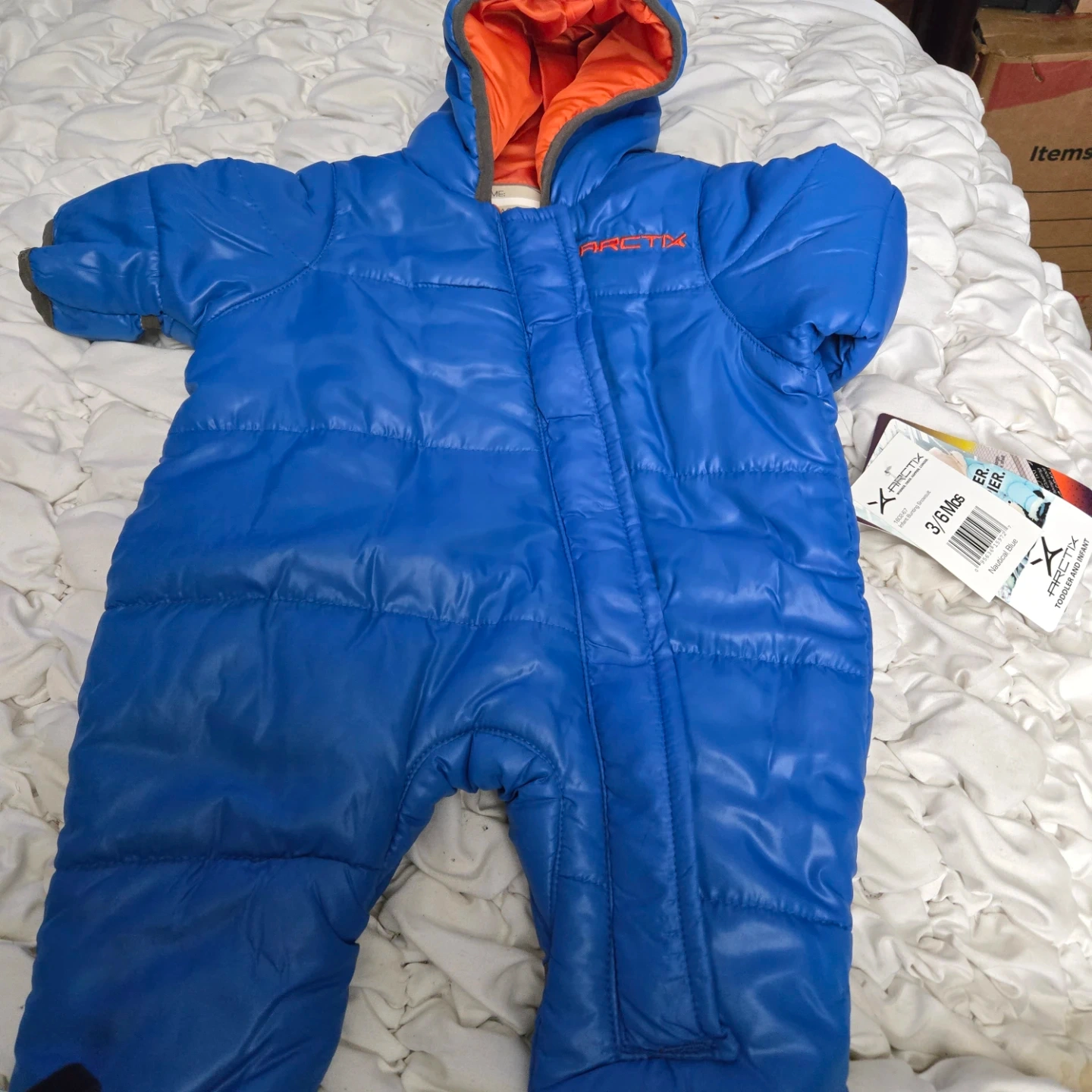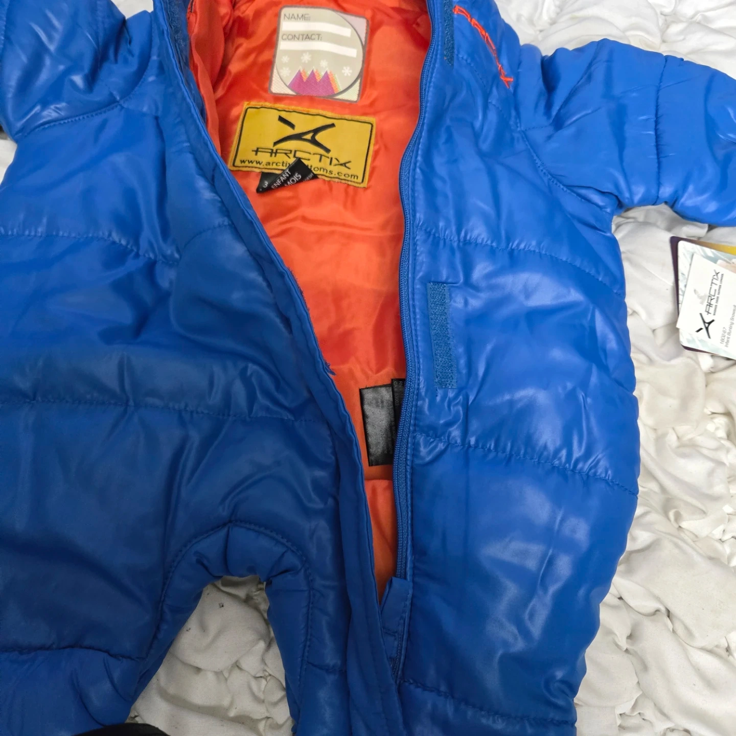 This Arctix snowsuit is in new condition with tags still attached! It's a vibrant blue color and sized for 3-6 months old babies. Perfect for keeping your little one warm and cozy during the winter months!
