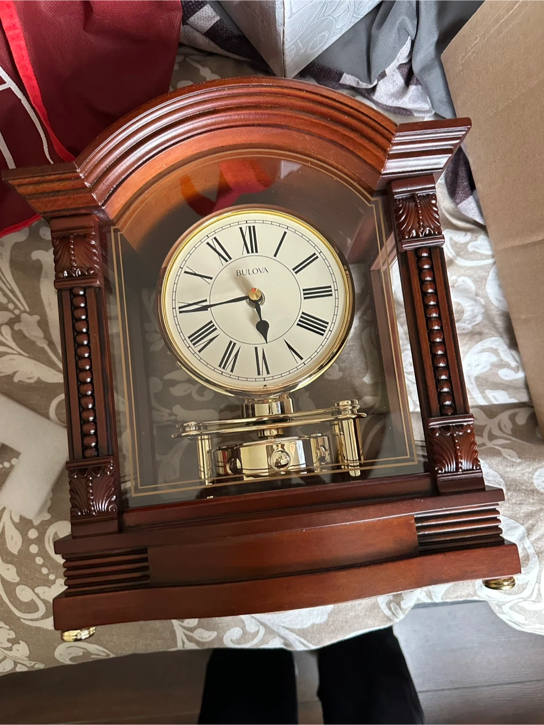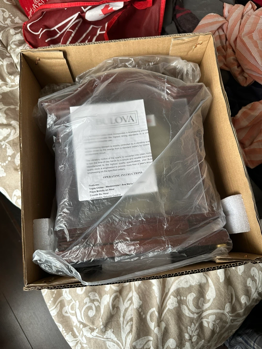 Selling a brand new Bulova B1987 quartz table clock! It's still in its original box and packaging, ready to add a touch of elegance to your home. This clock plays melodies like Westminster and Ave Maria, making it a delightful addition to any room