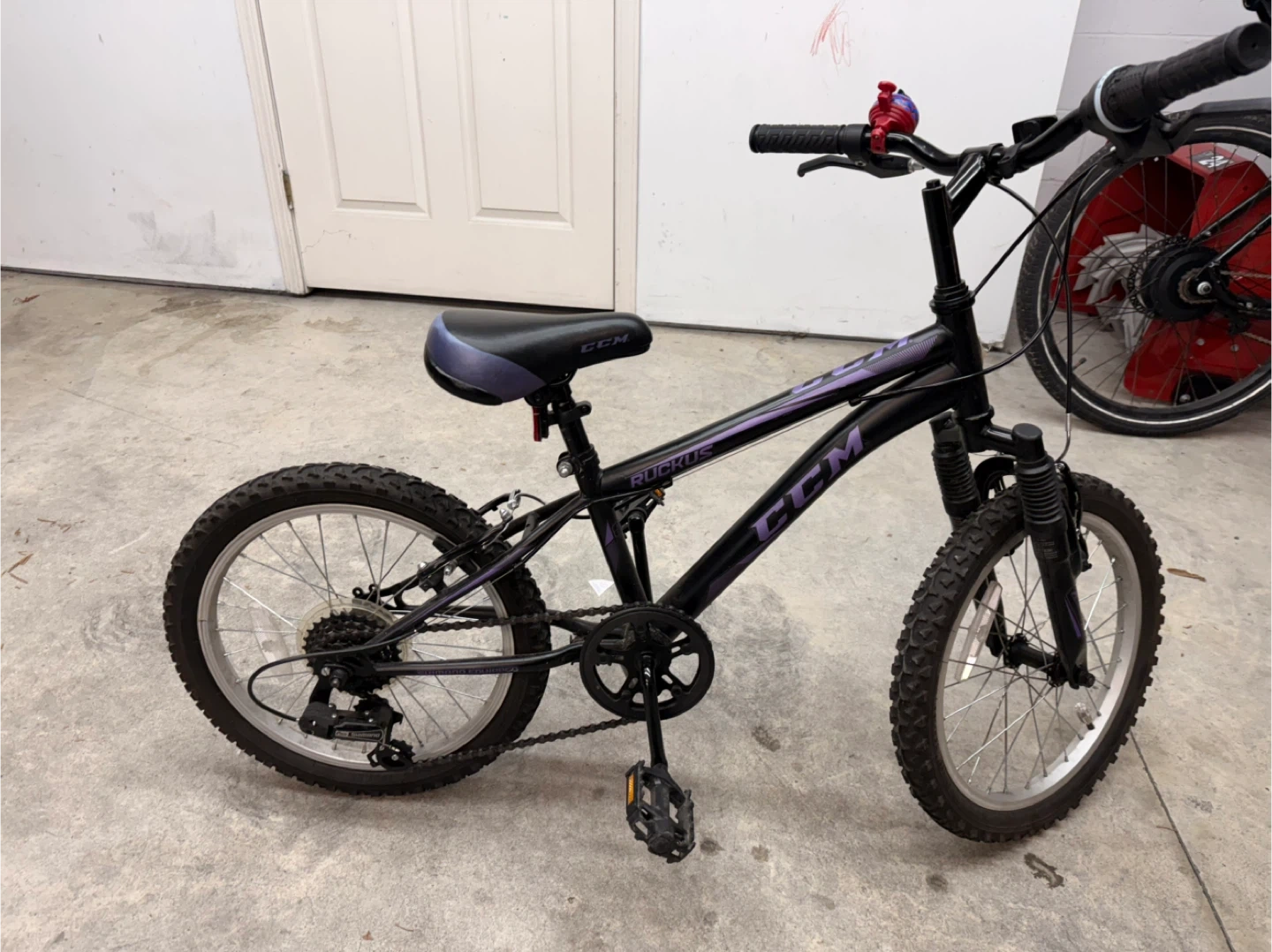 Selling a CCM Ruckus kids bike in black. It has a Shimano derailleur. Great for kids learning to ride!