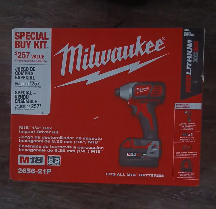 Selling a brand new Milwaukee M18 1/4" Hex Impact Driver Kit! It's a special buy kit with a $257 value if purchased separately. This kit includes the impact driver, an XC3.0 battery, an M18 & M12 charger, and a contractor bag. Fits all M18 batteries!