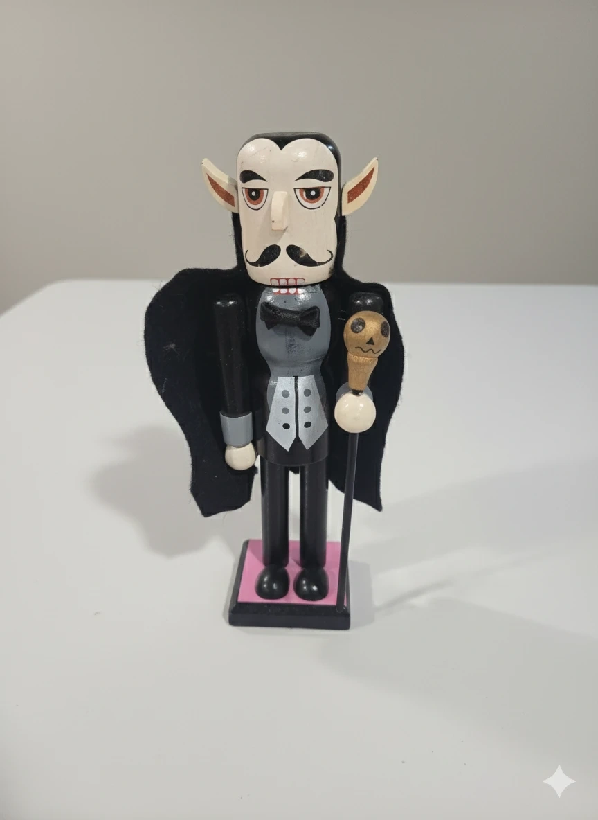 Here's a fun Dracula nutcracker figurine! It's in great shape and would be perfect for Halloween decor or year-round enjoyment for any vampire fan