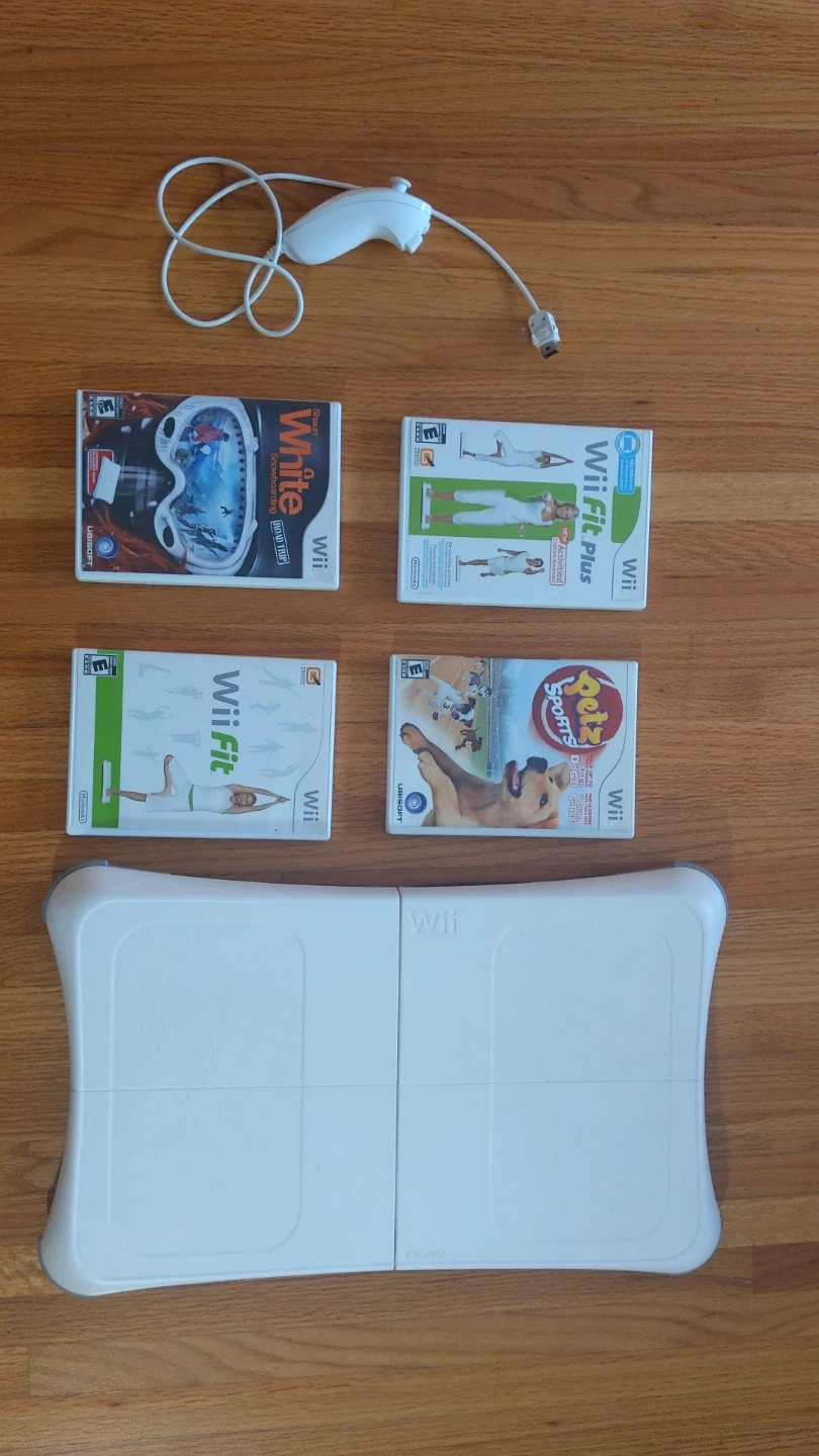 Selling a Wii Fit bundle! Includes the balance board, Wii Remote, Wii Fit, Wii Fit Plus, Shaun White Snowboarding Road Trip, and Petz Sports