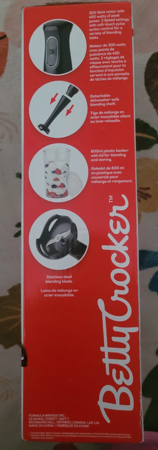 I'm selling a brand new Betty Crocker 2-Speed Hand Blender! It's still in its original packaging and has never been used.