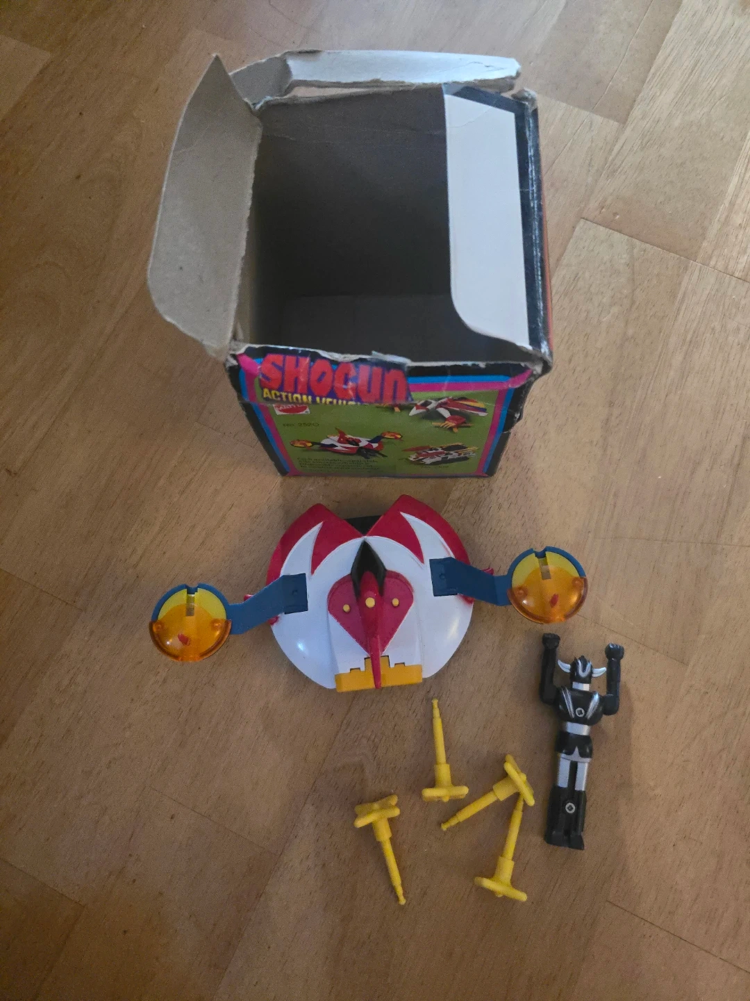 Selling a vintage Mattel Shogun Action Vehicle, specifically No. 2522! It comes with die-cast metal parts. The box is included, though it does show some wear. A cool piece for any collector!