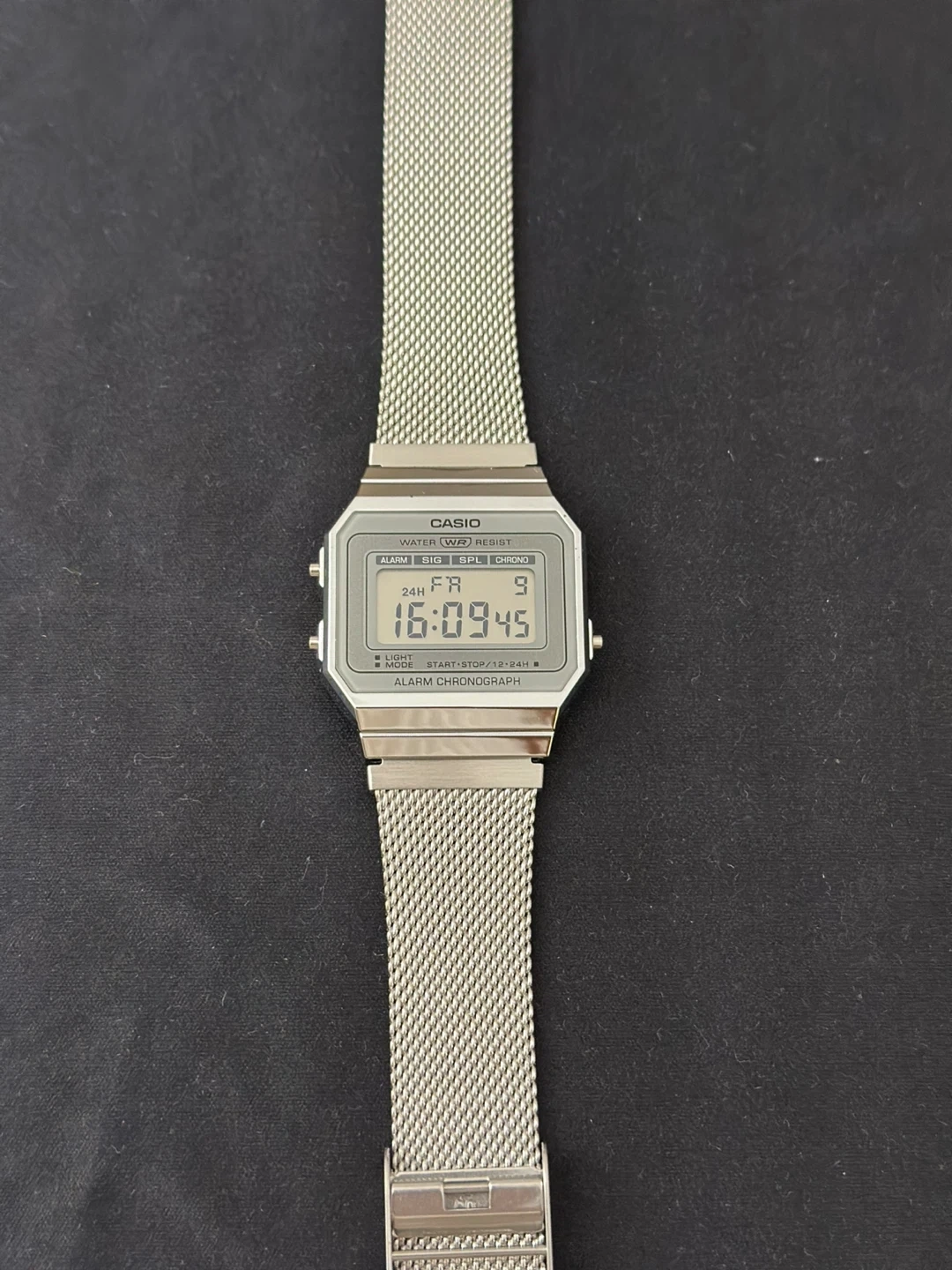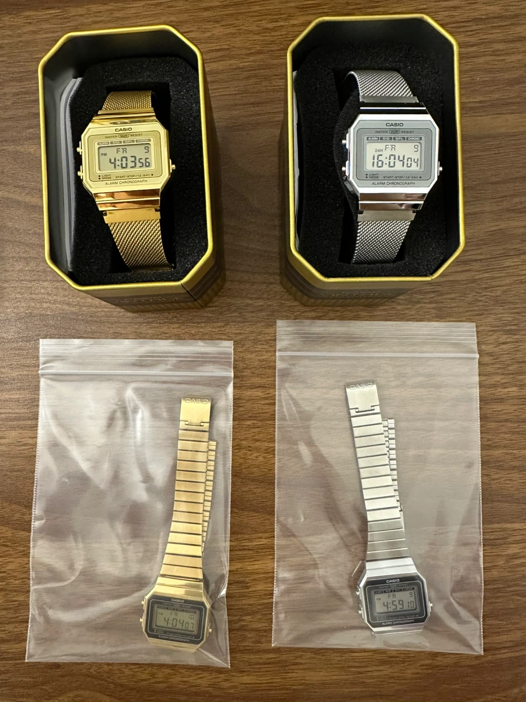 Selling FOUR variants of Casio's iconic ultra-slim vintage digital watch - the A700. Available in gold and silver tones, with both mesh and standard steel bracelets.