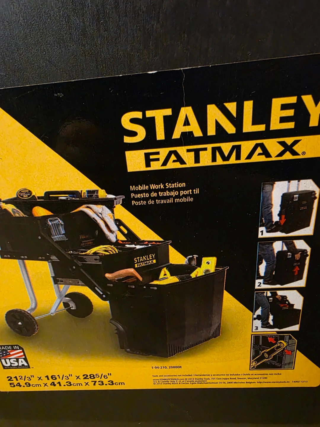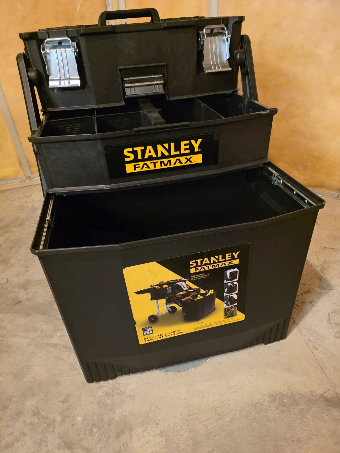 Selling a Stanley Fatmax Mobile Work Station. It's in great condition and ready for your next project! The dimensions are 21 2/3" x 16 1/3" x 28 5/6" (54.9cm x 41.3cm x 73.3cm)