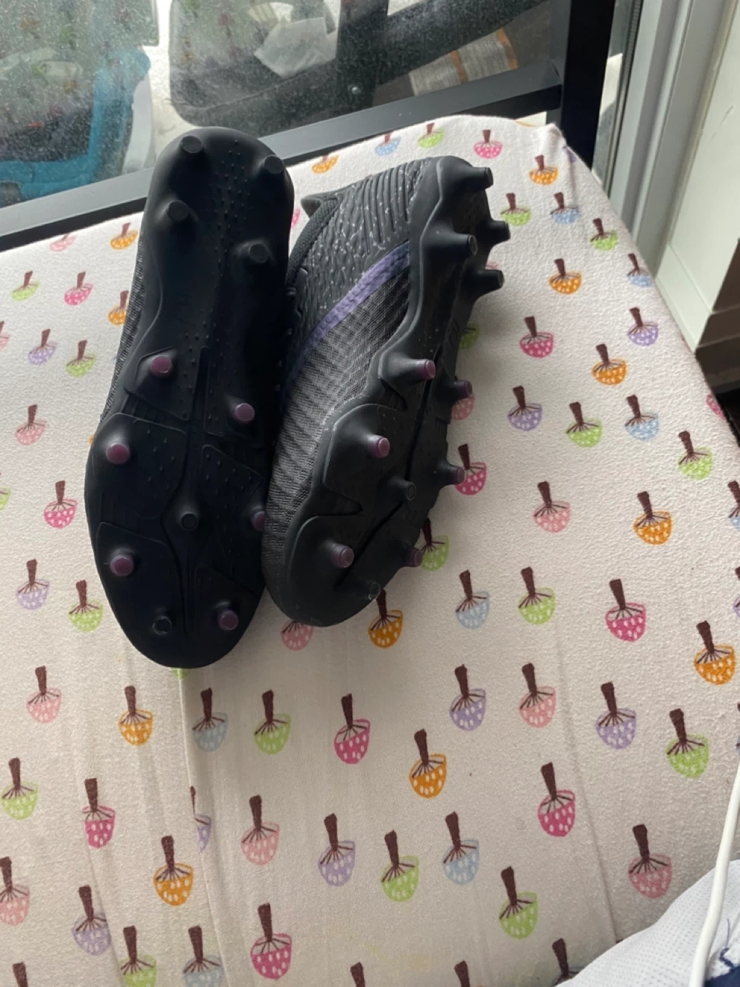 Selling a pair of black Kipsta soccer cleats. They are in great shape and ready for the field! Perfect for your next game or practice. They have a sleek design and provide great traction.