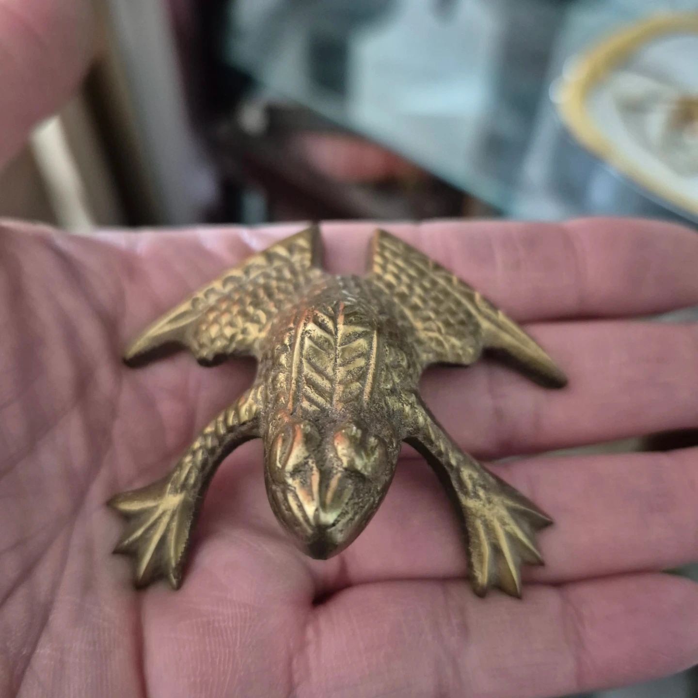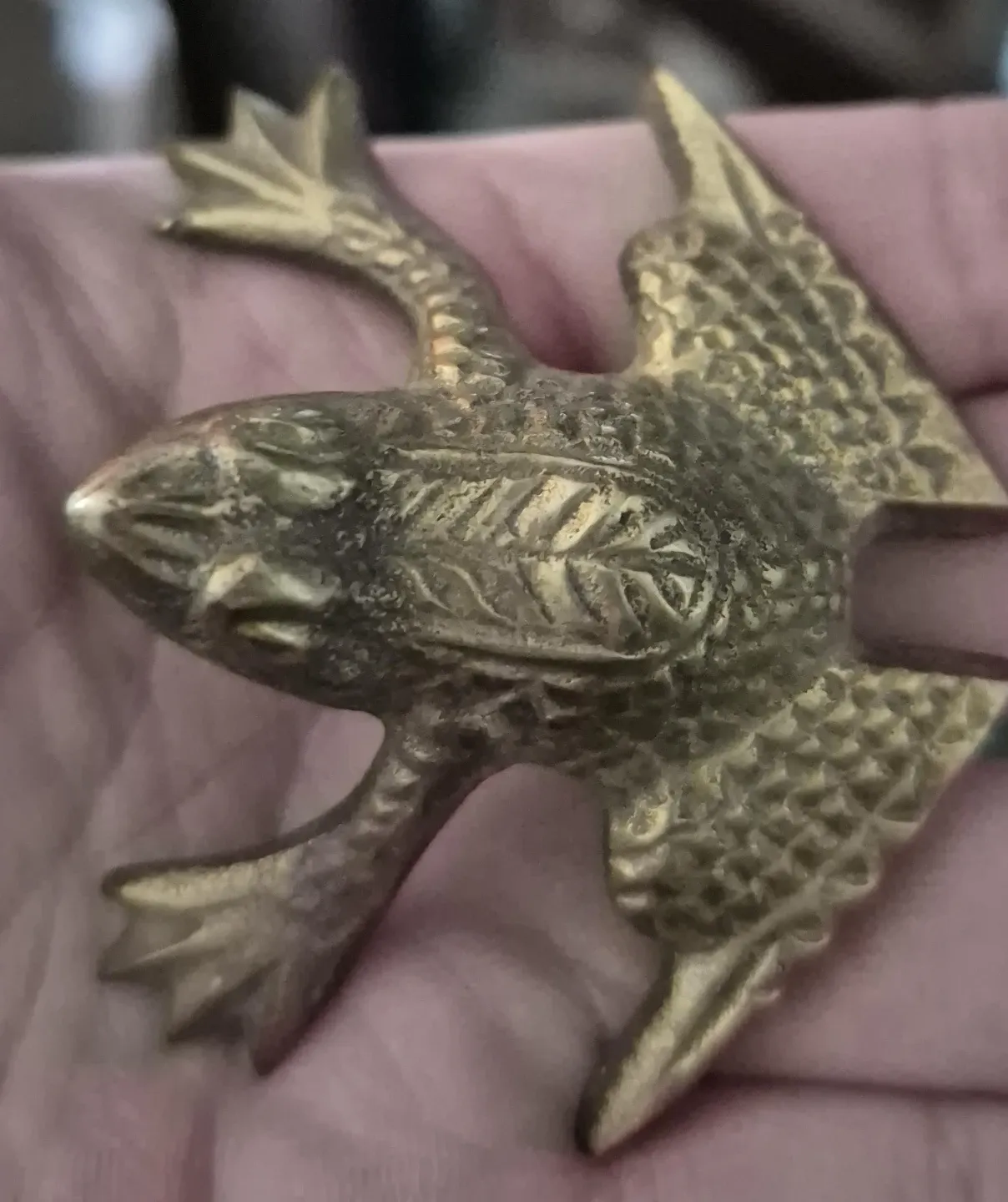 Selling a vintage brass frog figurine. It's a unique piece with intricate detailing. It would be a great addition to any collection or as a decorative item!