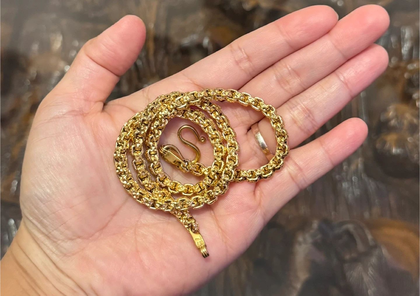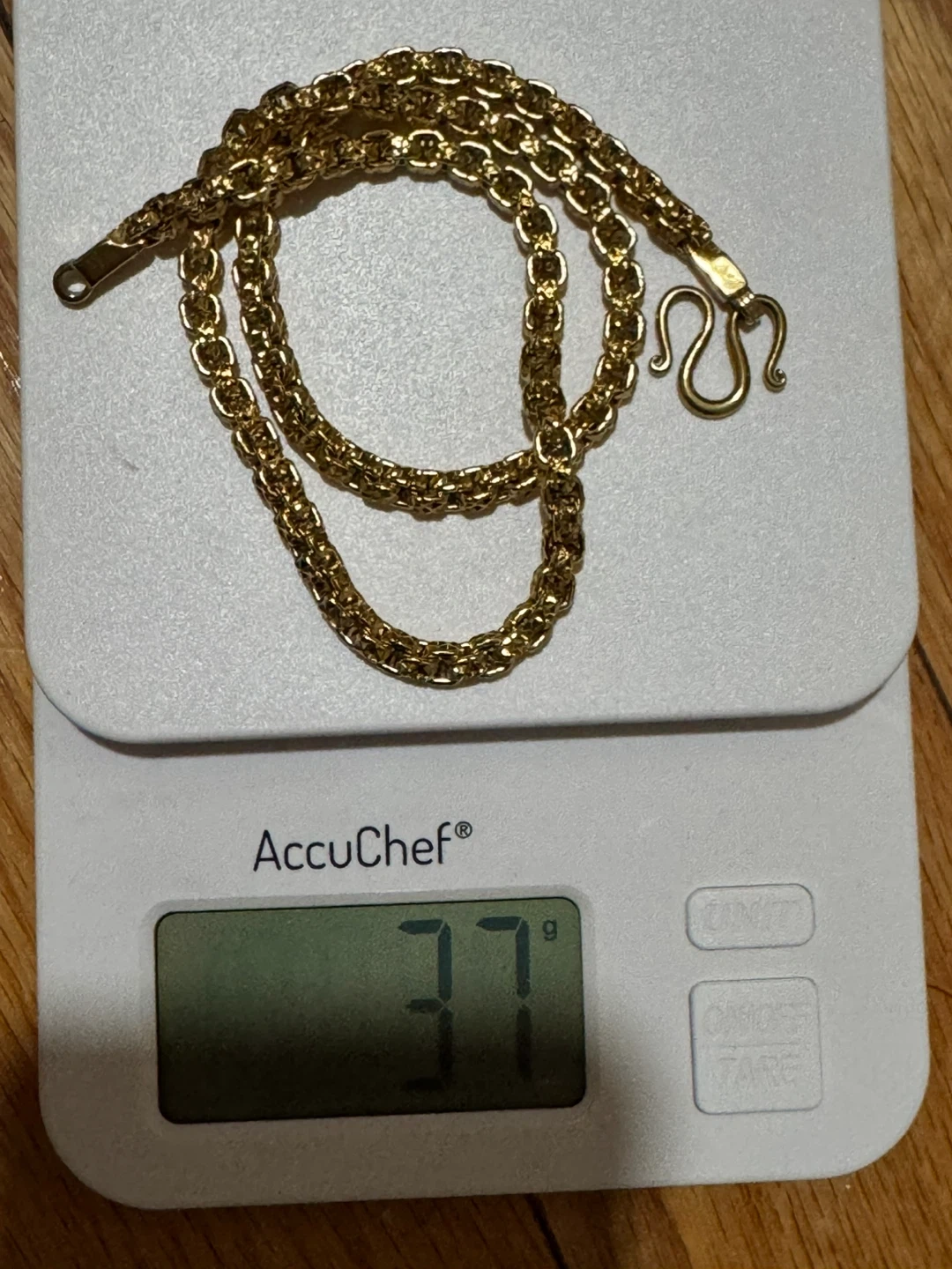 Buy & SellGold Chain Necklace - 37g (Sold)Gold Chain Necklace - 37g (Sold)$80Selling a gold chain necklace. It weighs approximately 37 grams. The necklace is gold in colour.ConditionNewWHERE TO MEETCheck LocationView MapSELLERThidaFairbank181 review8 chats·4 favorites·188 viewsSEND CHAT TO SELLERHi Thida! I’m interested in your listing.Hi Thida! I’m interested in your listing.Get the Karrot app to chatSign In to chat