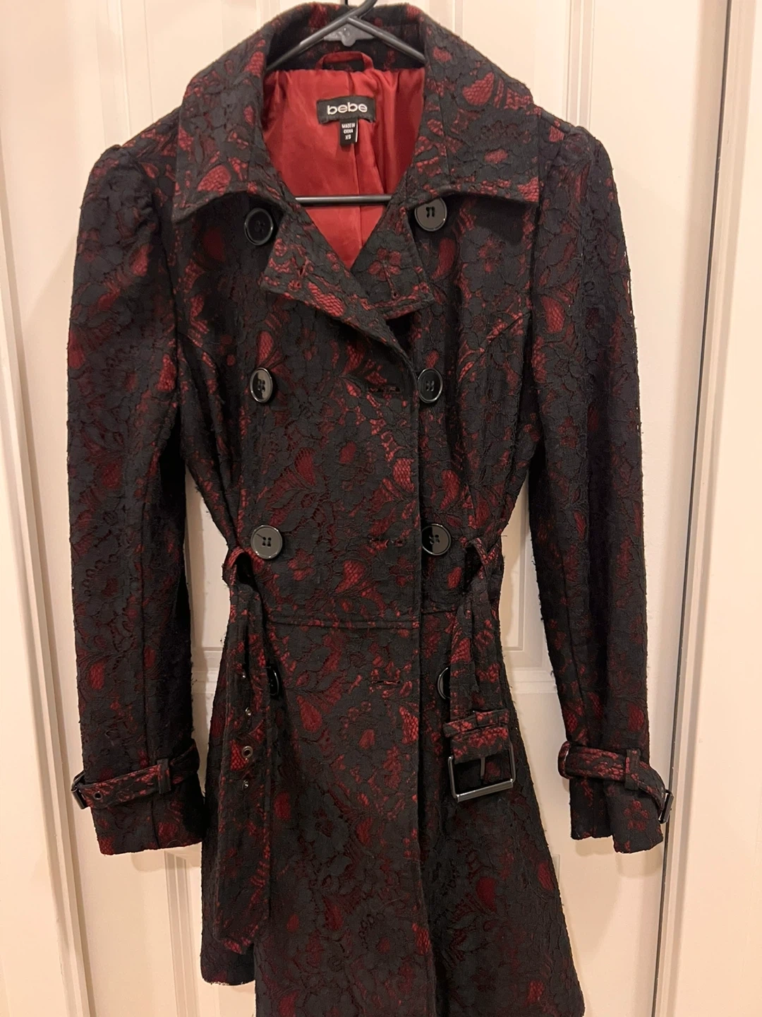 Buy & SellBebe Trench Coat - size XSBebe Trench Coat - size XS$90Black & dark red lace with silky interior Corset and belt Excellent/like new condition Meet up ✅ Local drop off ✅ Cash only pleaseConditionLike newSizeXSBrandBebeWHERE TO MEETStrawberry HillView MapSELLERverifiedAliyahNewton12410 reviews0 chats·0 favorites·7 viewsSEND CHAT TO SELLERHi Aliyah! I’m interested in your listing.Hi Aliyah! I’m interested in your listing.Get the Karrot app to chatSign In to chat