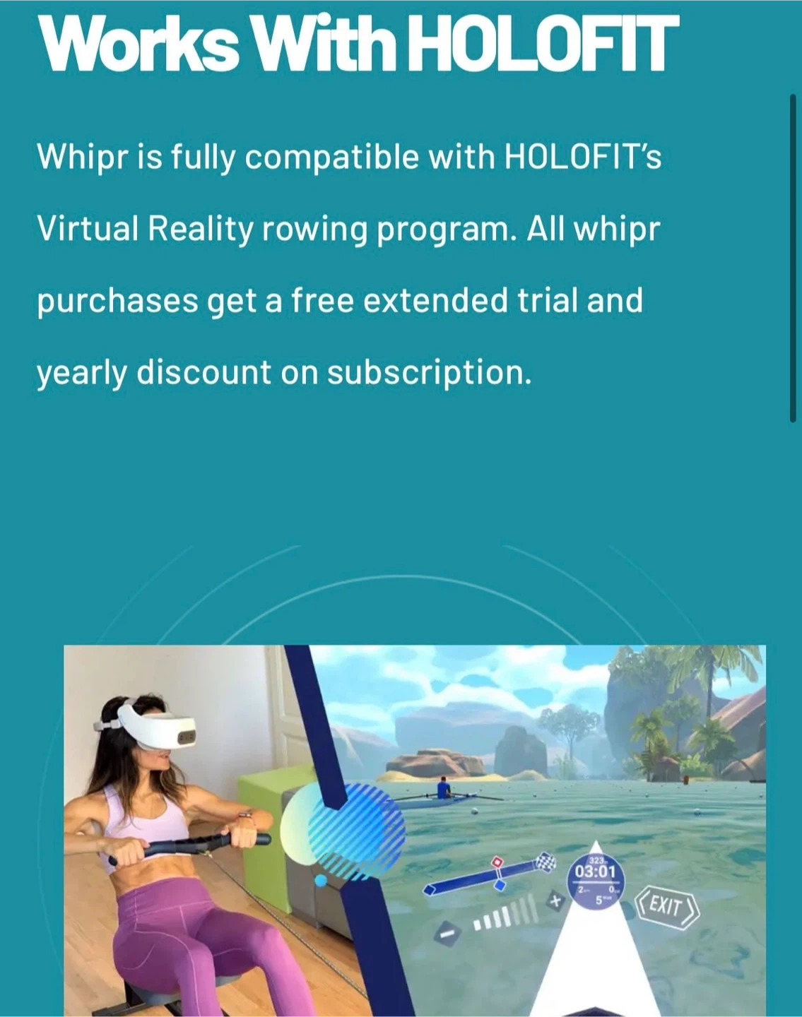 Selling a rowing machine that is compatible with HOLOFIT’s Virtual Reality rowing program.