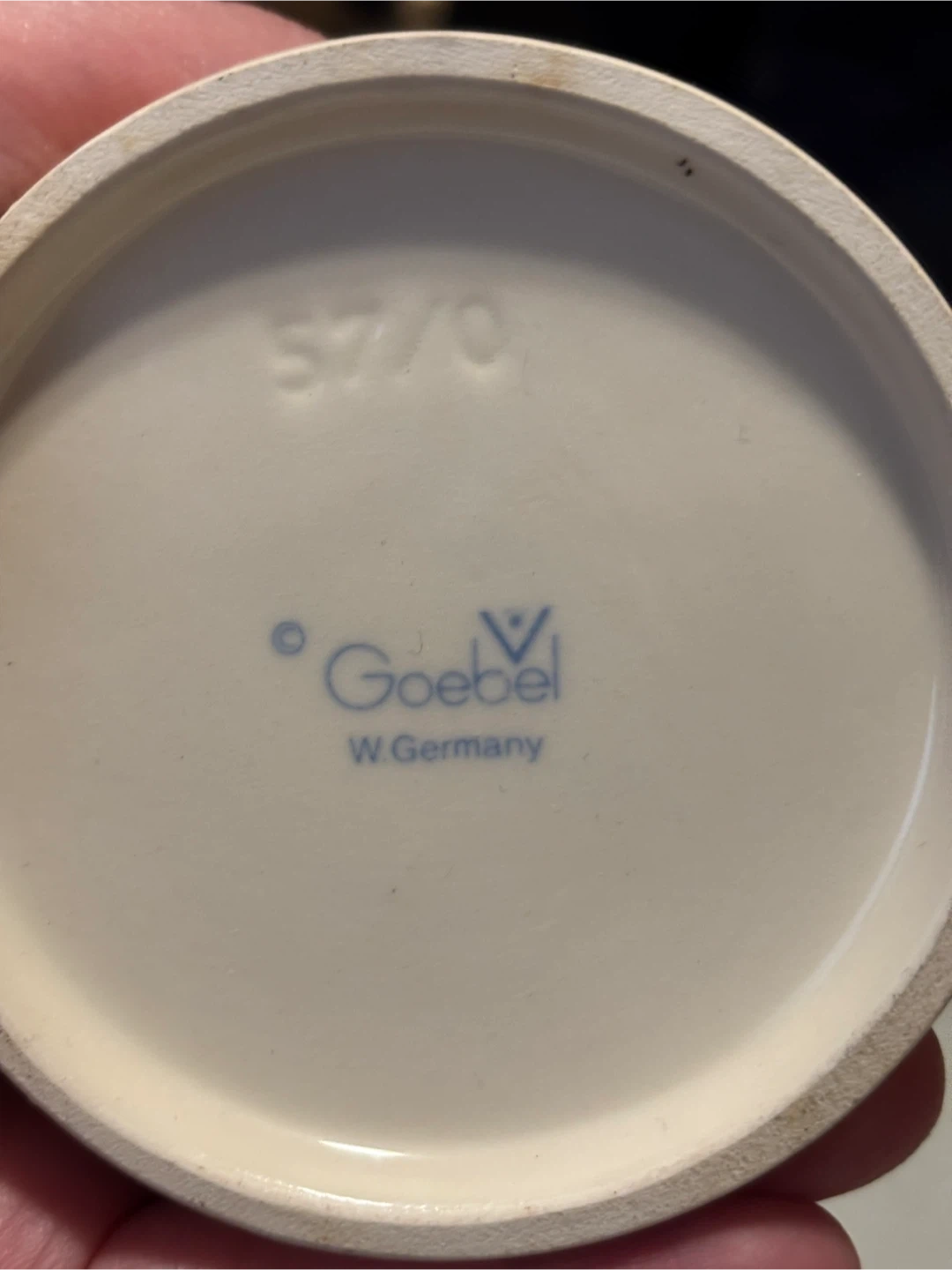 Selling a Goebel Hummel figurine called "Chick Girl"! It's in great condition and features a sweet girl holding a basket of chicks. The bottom of the figurine is marked with the Goebel logo and "W. Germany".