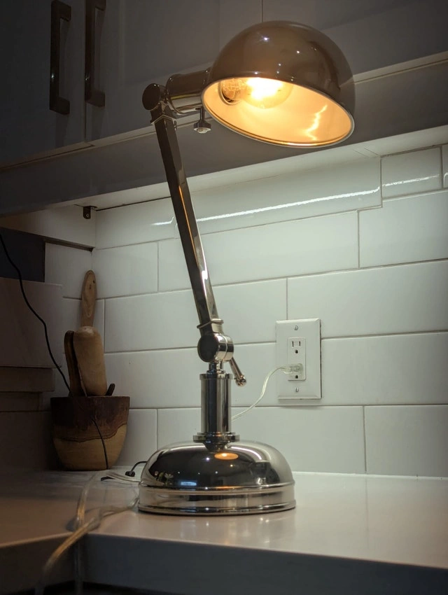 I am selling my Ethan Allen adjustable metal desk/task lamp, model 09-6426, manufactured April 2010 with an Edison bulb. Heavy, high-quality construction with a fully articulated arm and dome shade — perfect as a desk lamp, reading lamp, or statement accent.