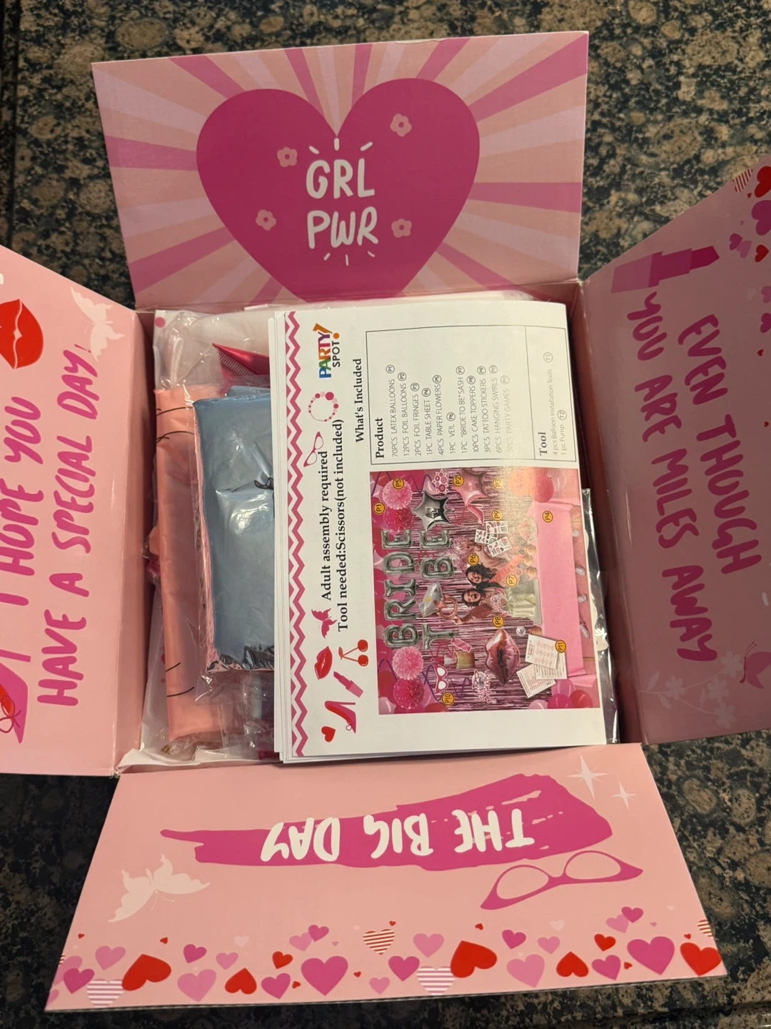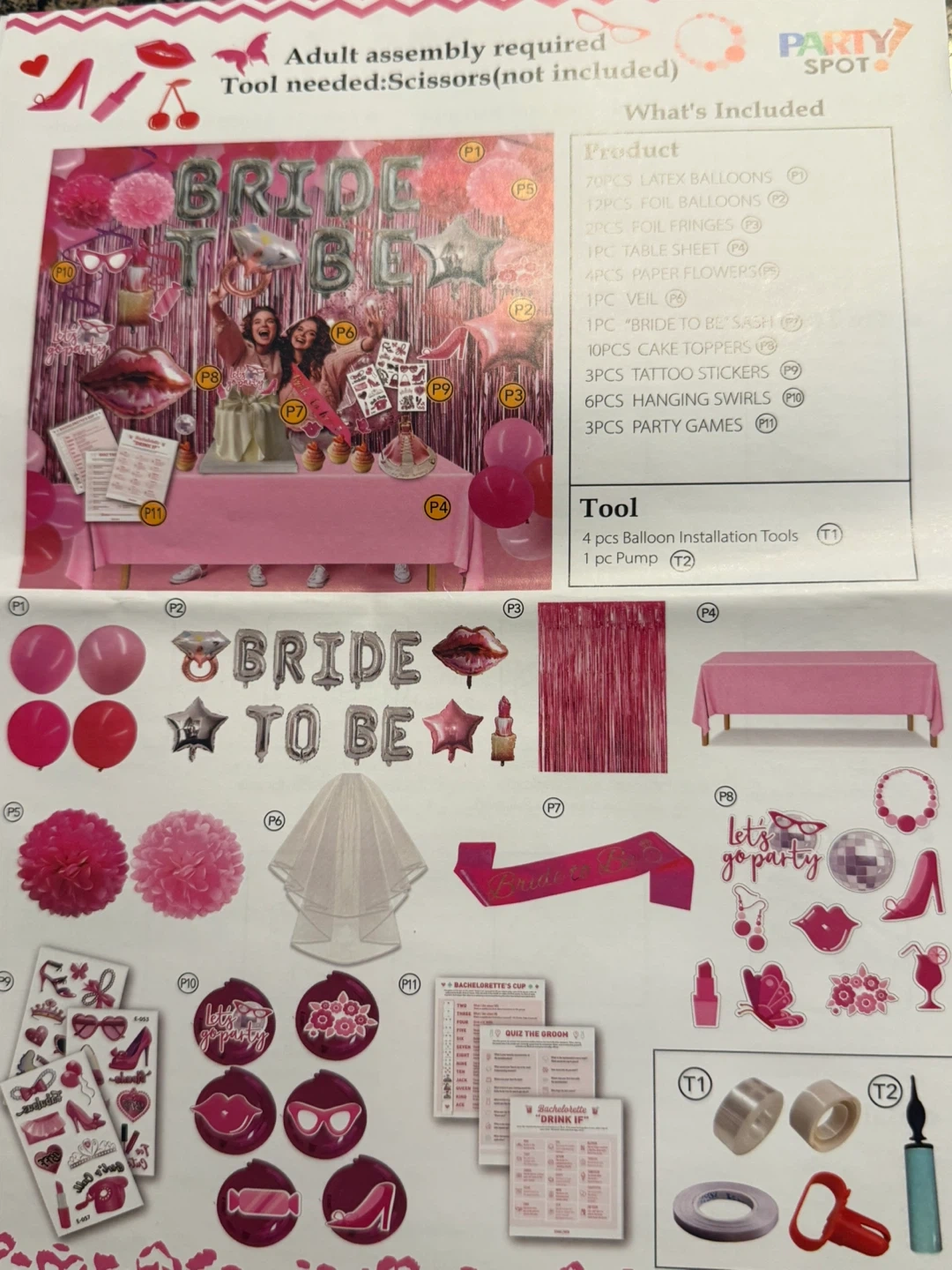 Selling 3 brand new Party Spot 119 PCS Bachelorette Party Decorations kit! It includes everything you need for a fun bridal shower party, including latex balloons, foil balloons, foil fringes, a table sheet, paper flowers, a veil, a 'Bride to Be' sash, cake toppers, tattoo stickers, hanging swirls, and party games. Also comes with balloon installation tools and a pump. 3 boxes