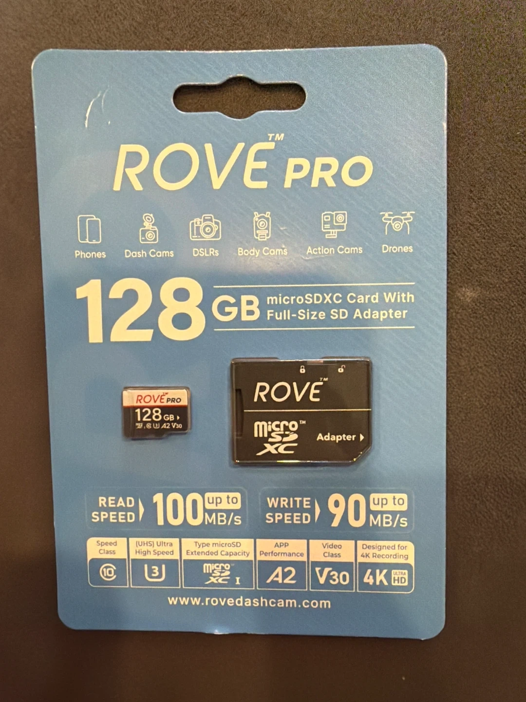 Also including a ROVE PRO 128GB microSDXC Card with Full-Size SD Adapter!