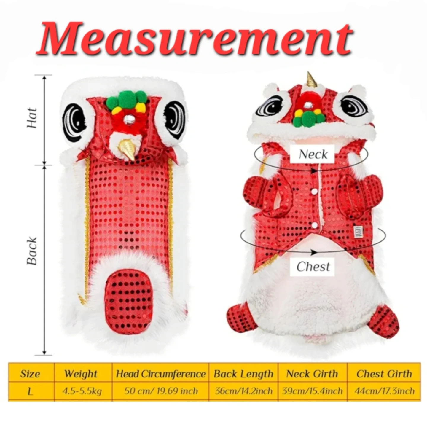 Lion Dance Costume for Pets - Size L