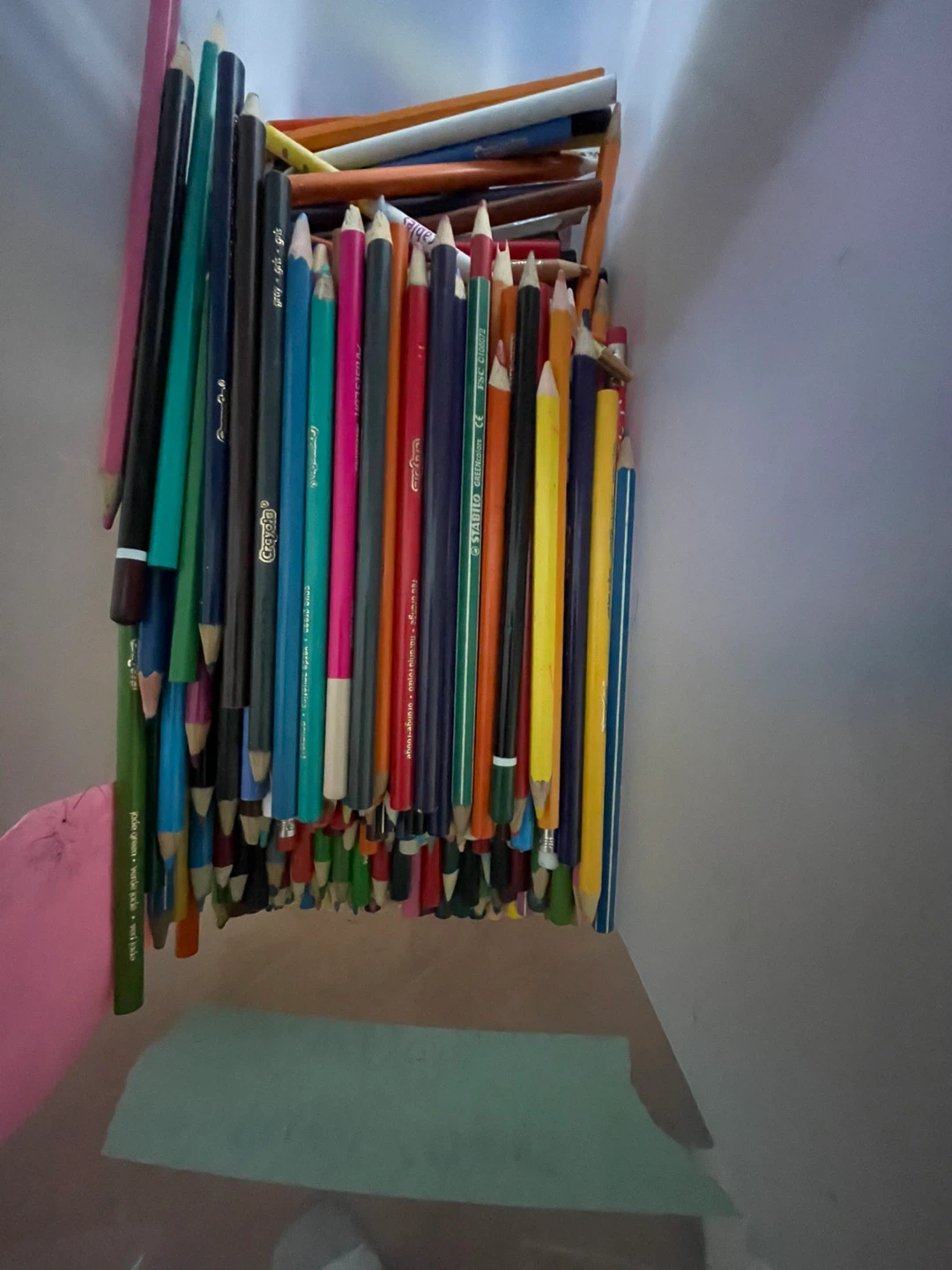 A collection of coloured pencils from brands like Crayola. Great for art projects or just doodling!