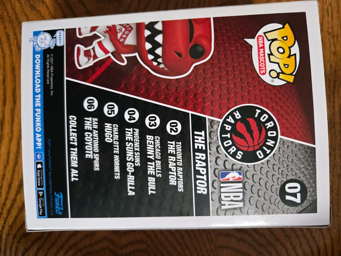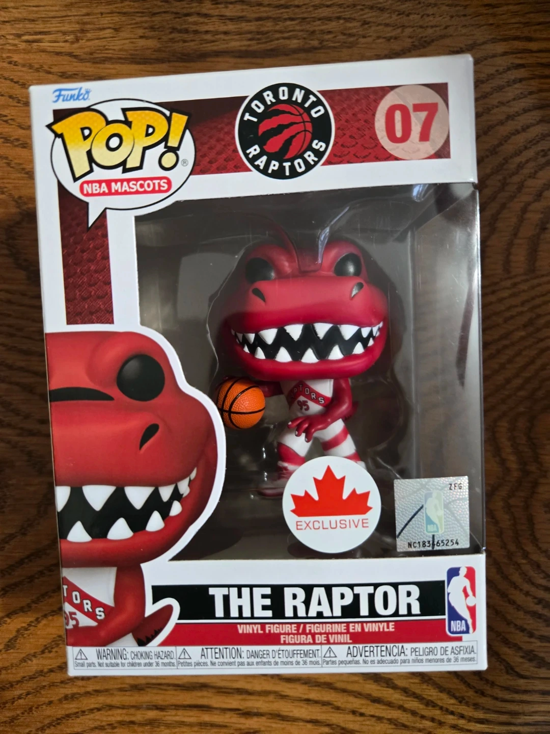 Selling a Funko Pop! NBA Mascots figure of The Raptor, number 07! It's in great condition and comes in its original box. A must-have for any Toronto Raptors fan or Funko collector!