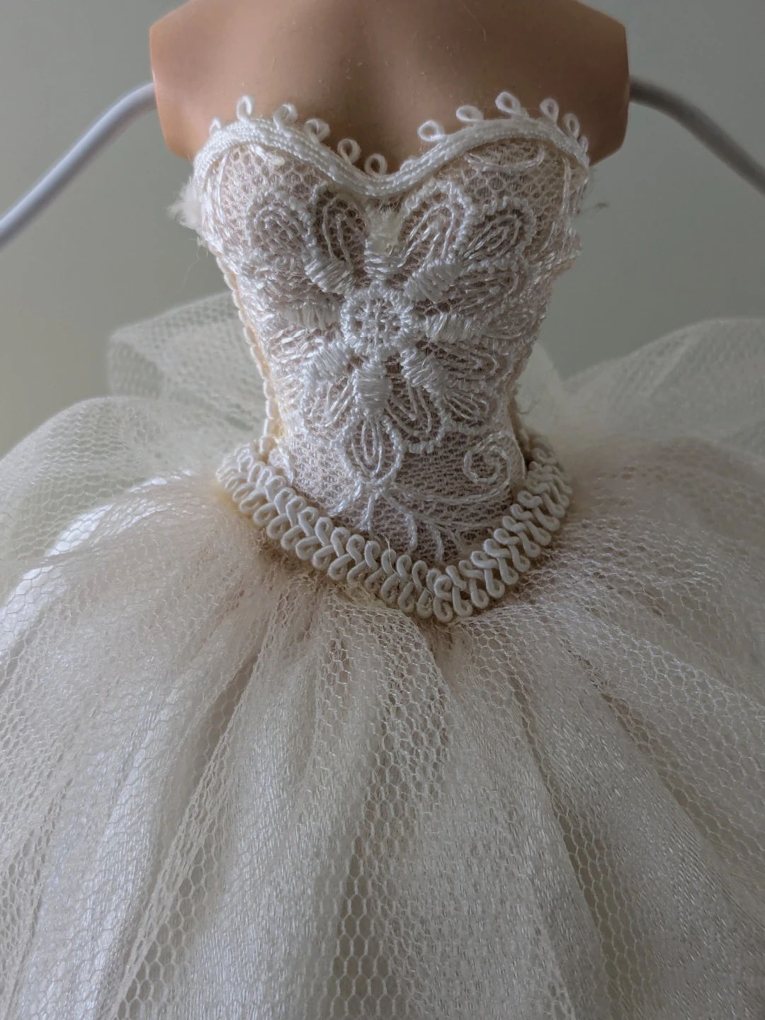 This charming jewelry organizer is shaped like a ballerina. It features a wire rack for hanging necklaces and earrings. The base is padded with lace trim.