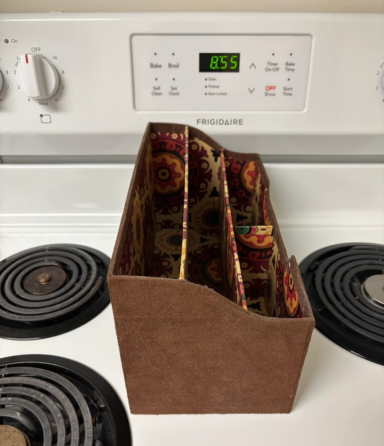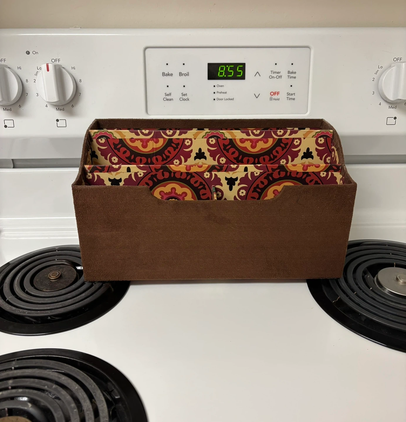 Letter sorter on stove to show size