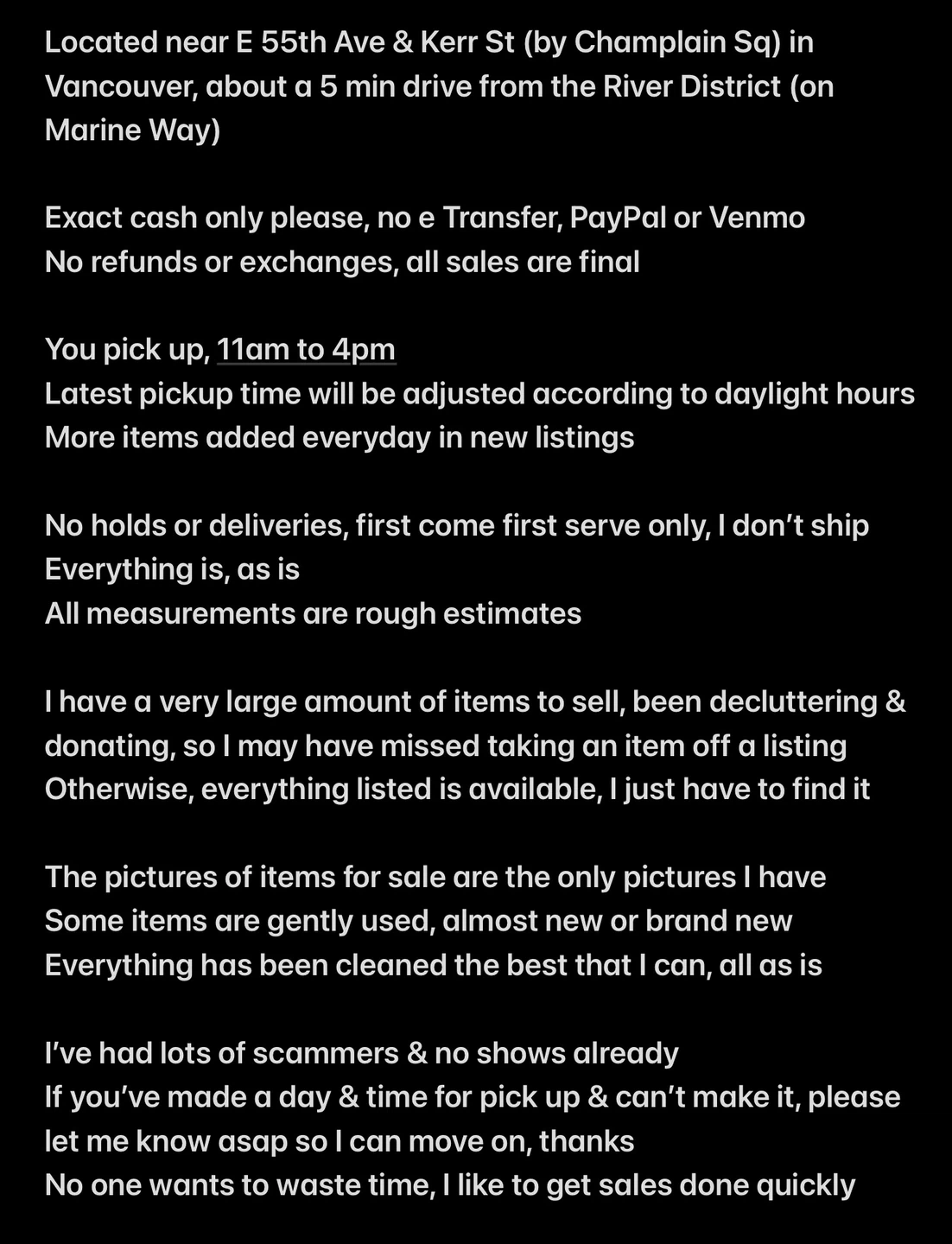 Info in last photo, I’m a block away from the general area