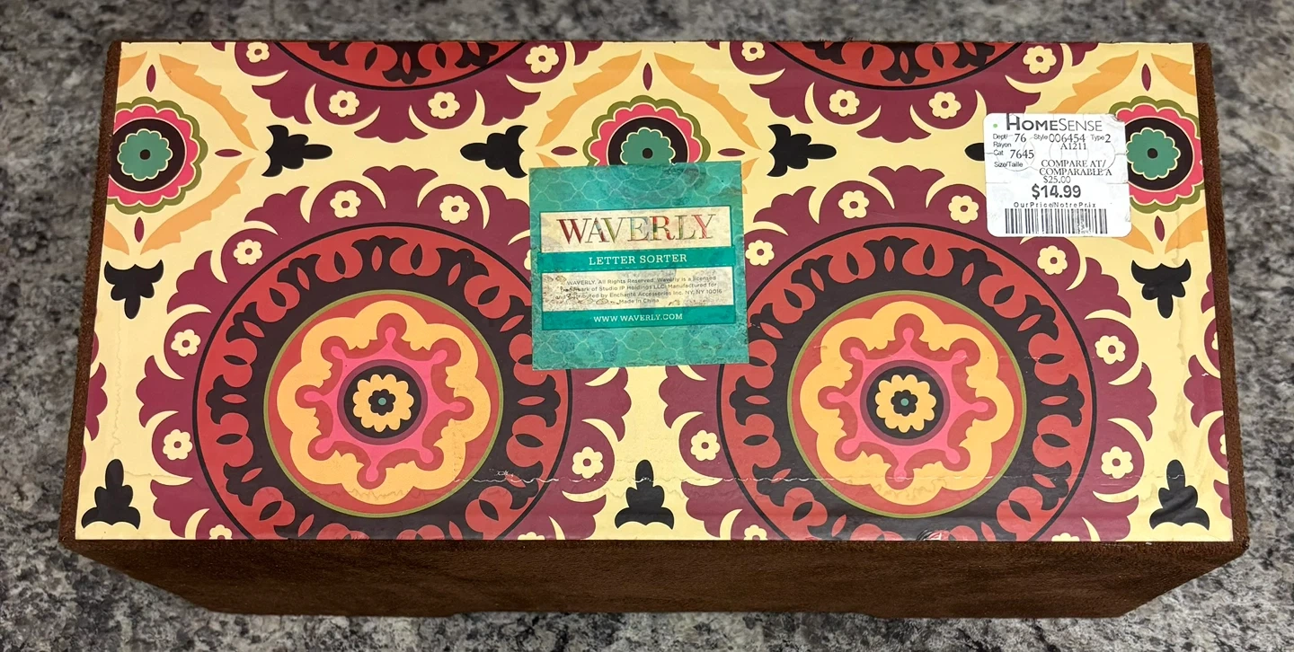 Letter sorter on stove to show size