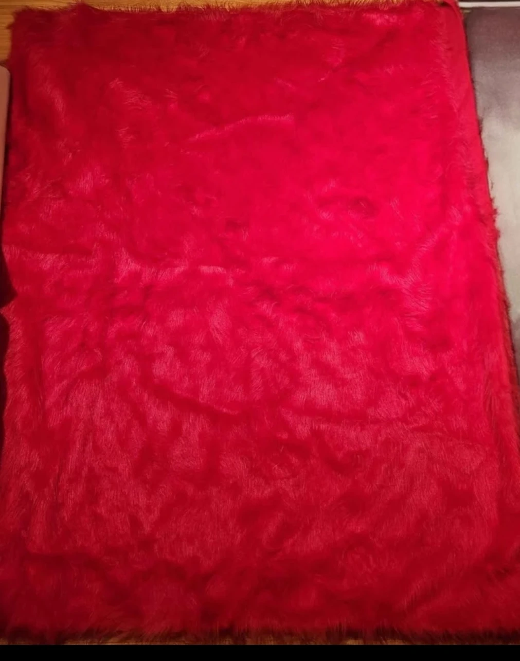 Selling a piece of red faux fur fabric! It's a vibrant colour and has a soft, plush texture. Perfect for crafting, sewing projects, or adding a cozy touch to your space. Retails for $45/meter.