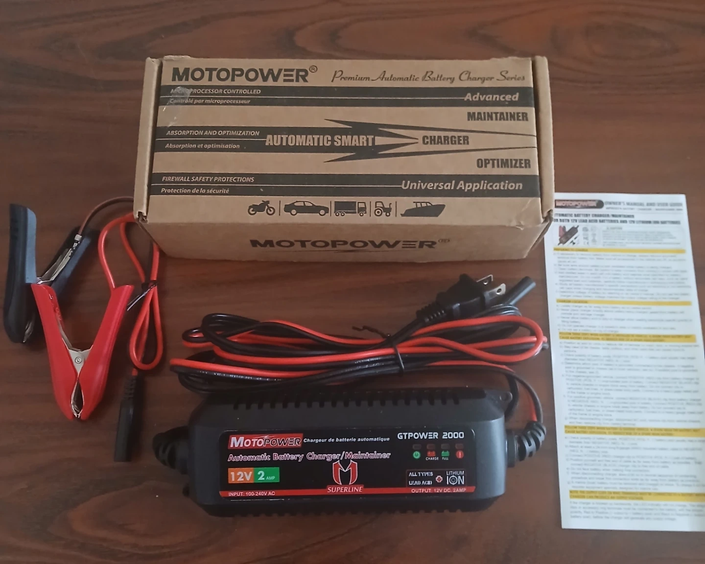 MOTOPOWER MP00207A 12V 2Amp Smart Automatic Battery Charger/Maintainer for Both Lead Acid Batteries and Lithium Ion Batteries