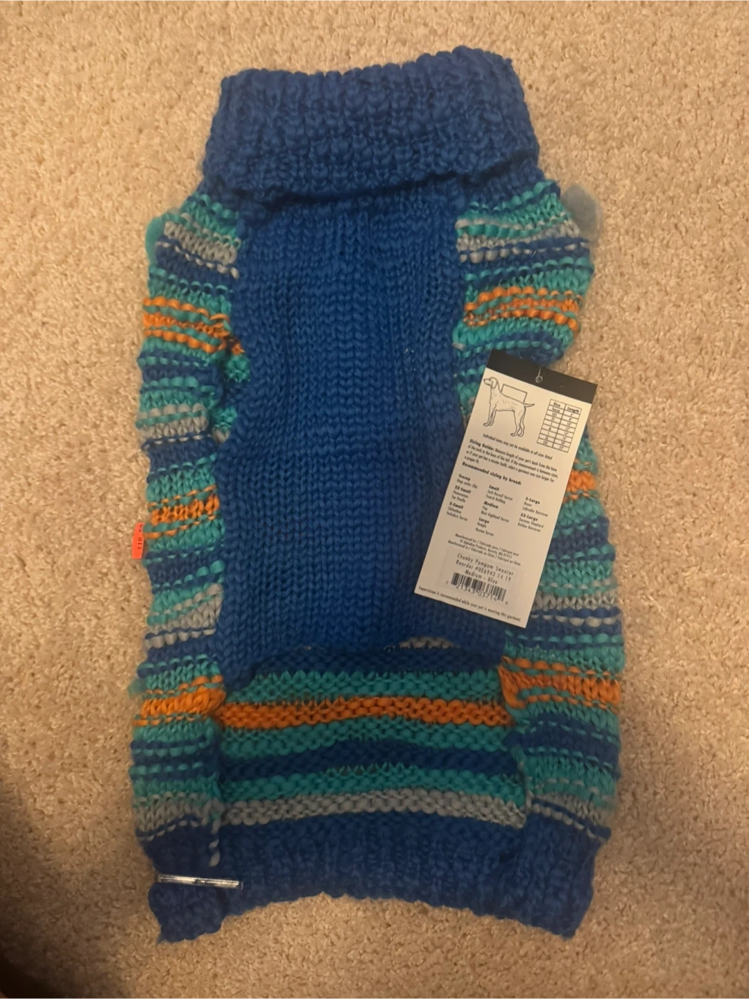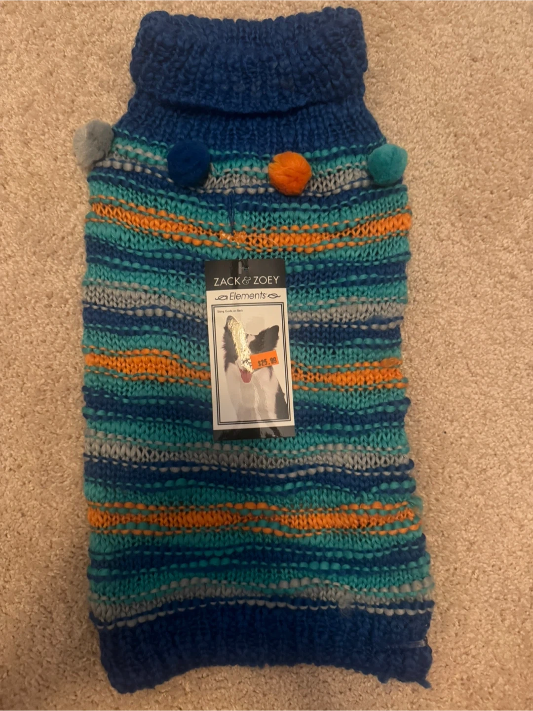 Keep your furry friend warm and stylish with this Zack & Zoey Elements dog sweater! It's a size small and features a colorful striped design with pom-pom accents. This sweater is perfect for adding a touch of fun to your dog's wardrobe. Originally priced at $29.99