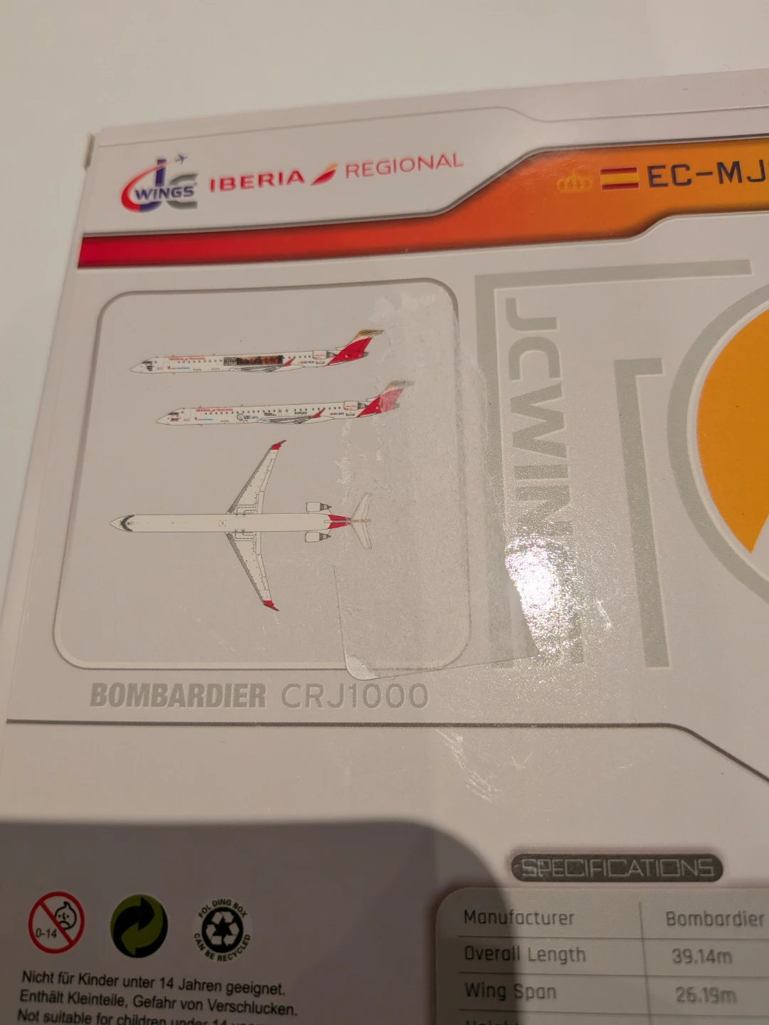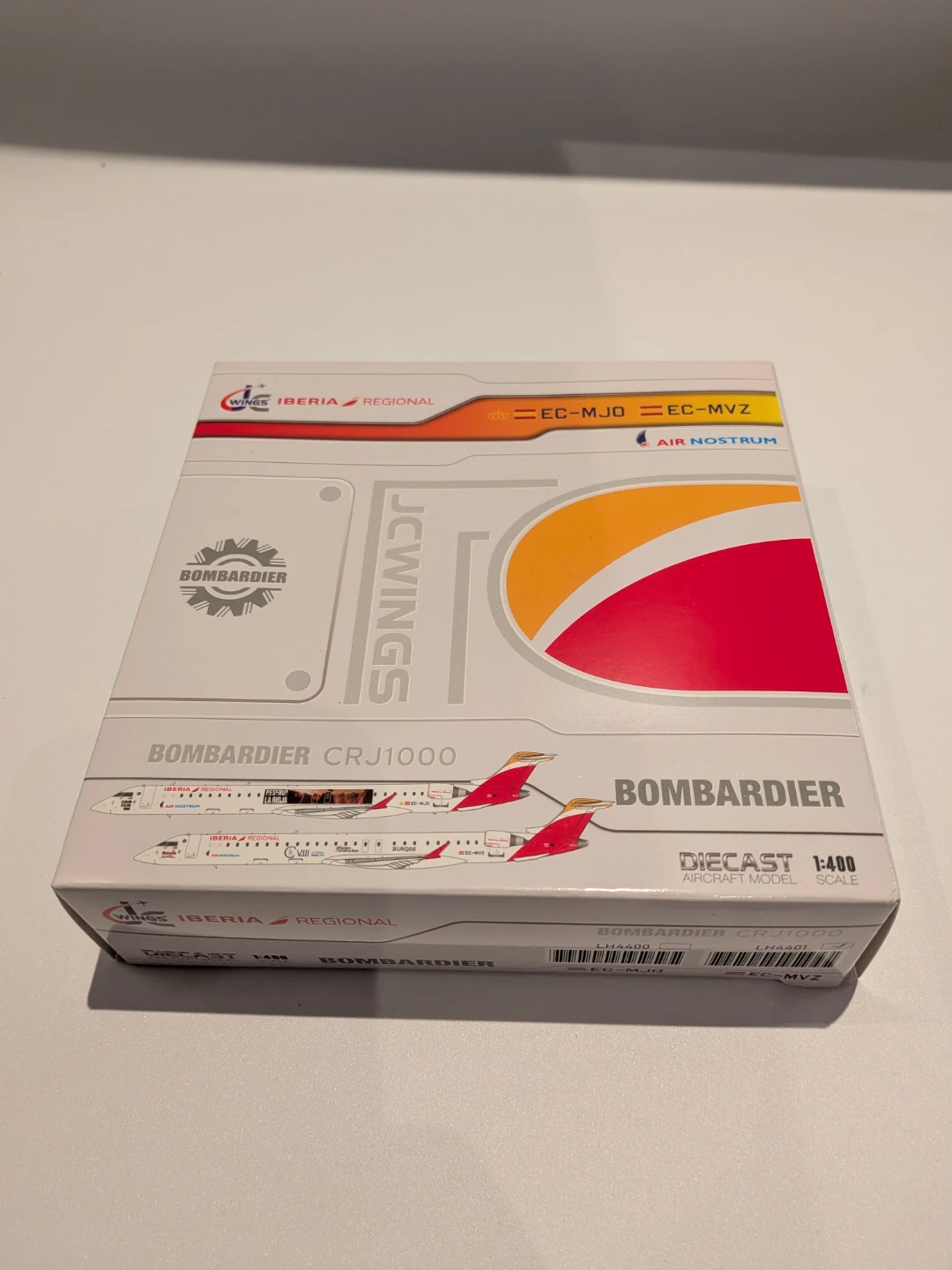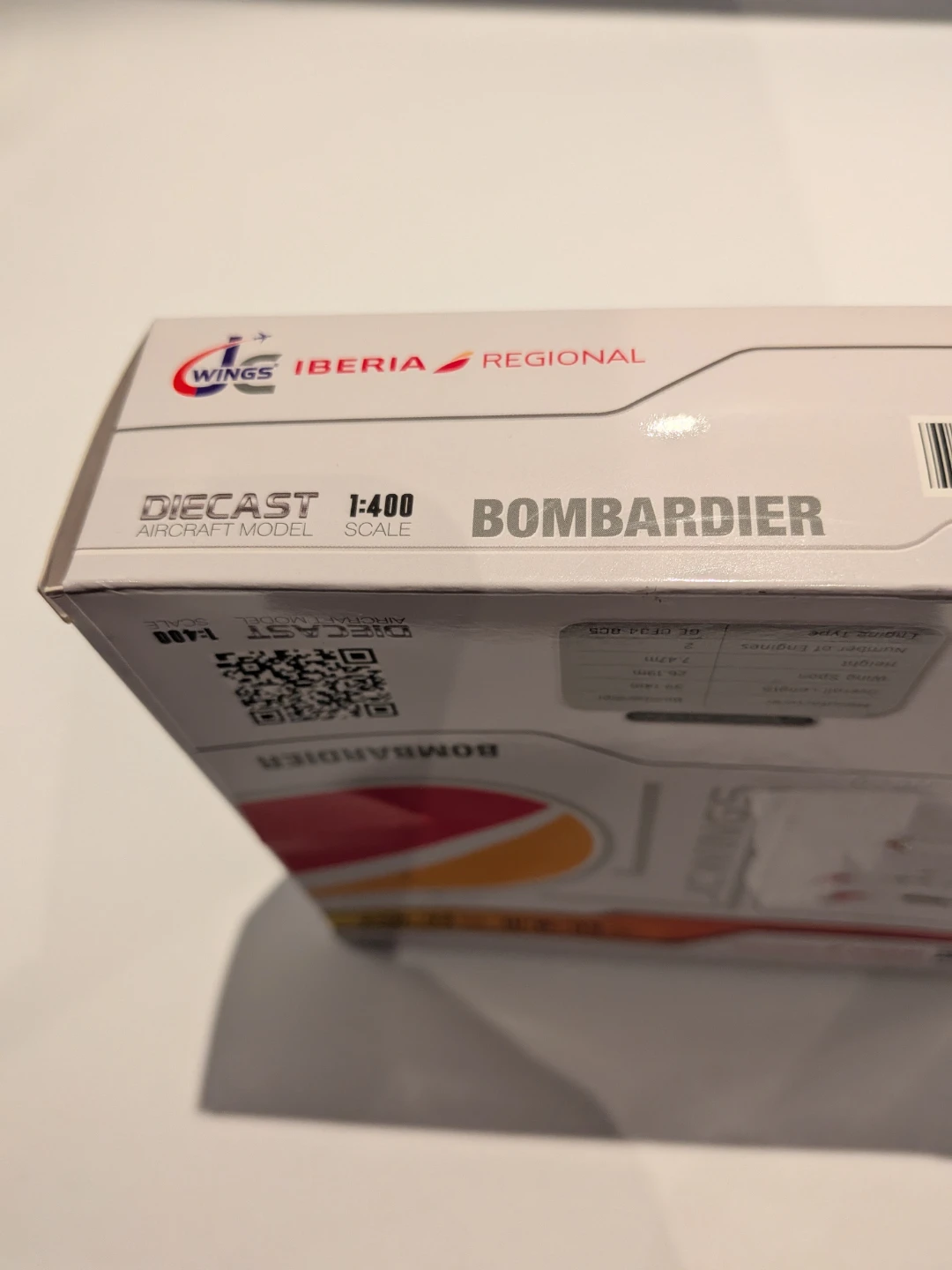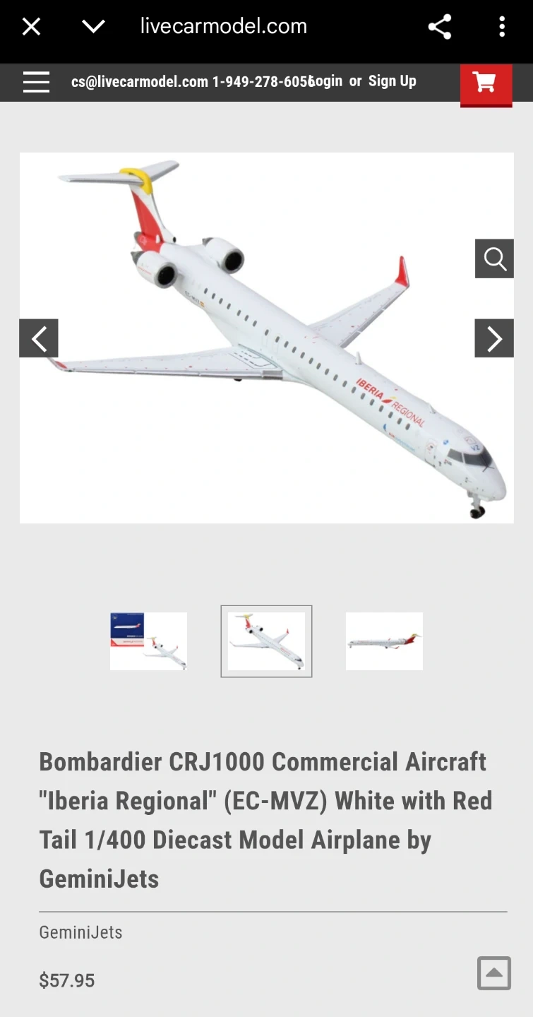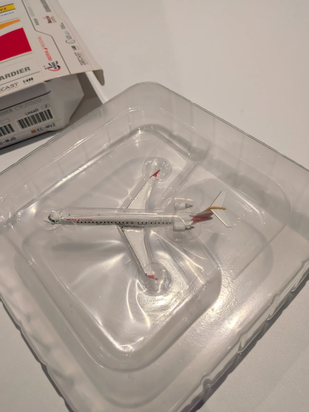 Selling a new, in-box GeminiJets Bombardier CRJ1000 Commercial Aircraft "Iberia Regional" (EC-MVZ) in white with a red tail, a 1/400 diecast model airplane. This detailed model is perfect for collectors and aviation enthusiasts alike.