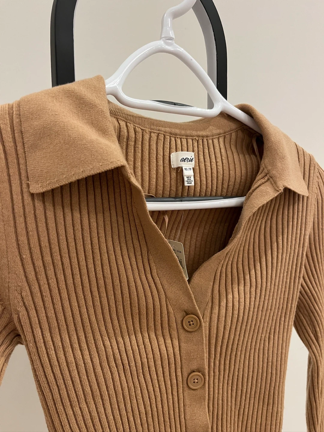 Aerie button-up collared cardigan tan — XS — tags on (58.95) — $10