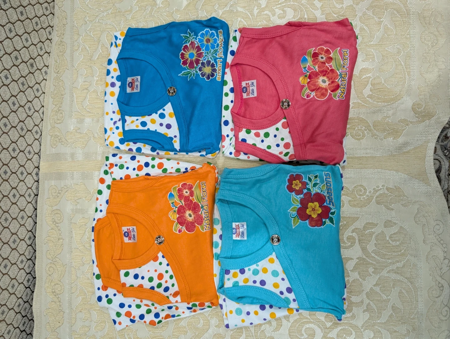 Selling a set of adorable baby girl dresses in assorted colours! They're in great condition and perfect for your little one with pure cotton material. Each dress features a cute floral design and colourful polka dots.