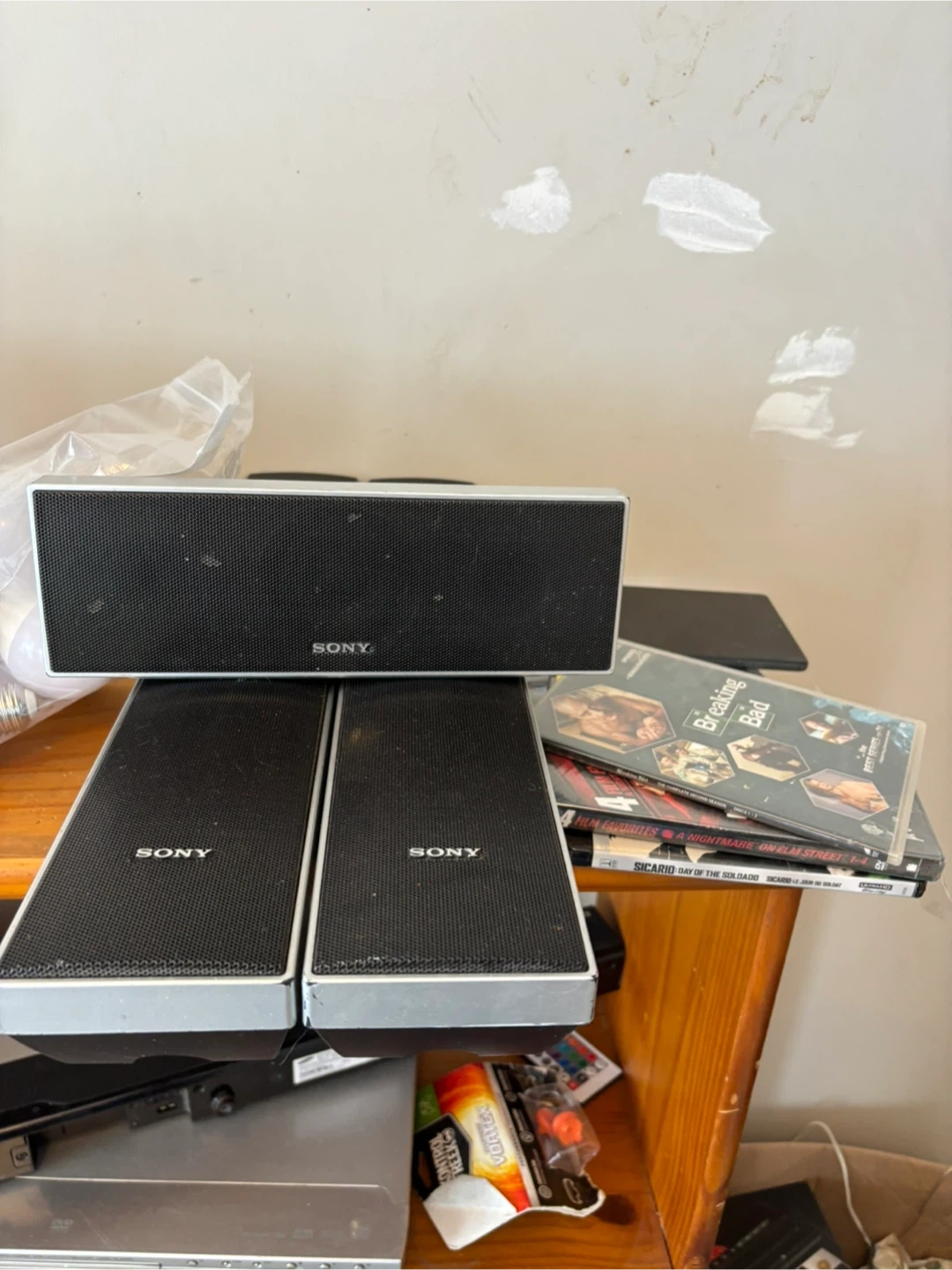 Selling a set of five Sony surround sound speakers. They're in good condition and ready to use. Perfect for setting up surround sound or just enjoying your favourite tunes!