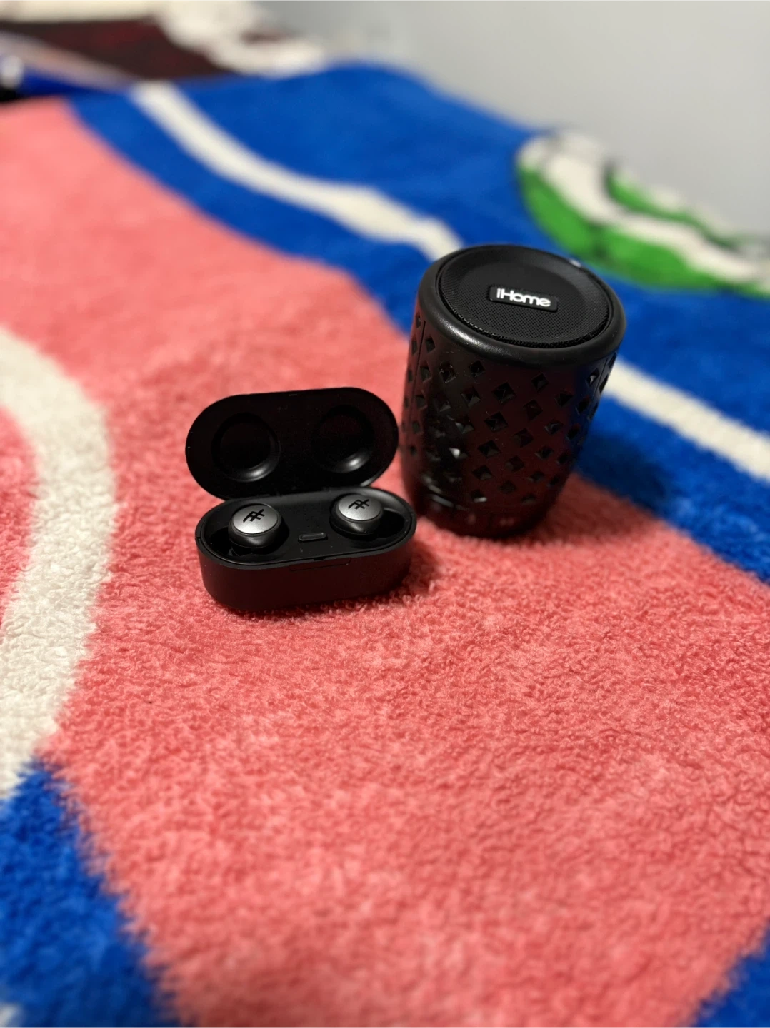 Selling a set of iHome wireless earbuds and a portable speaker. Both are in great condition and ready to use.