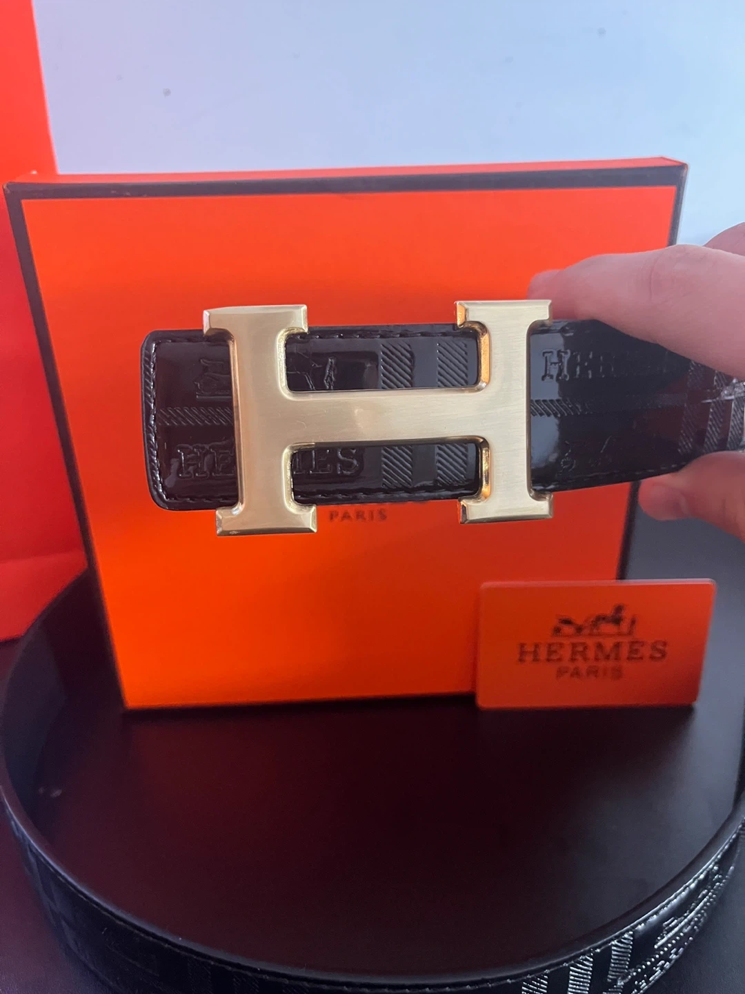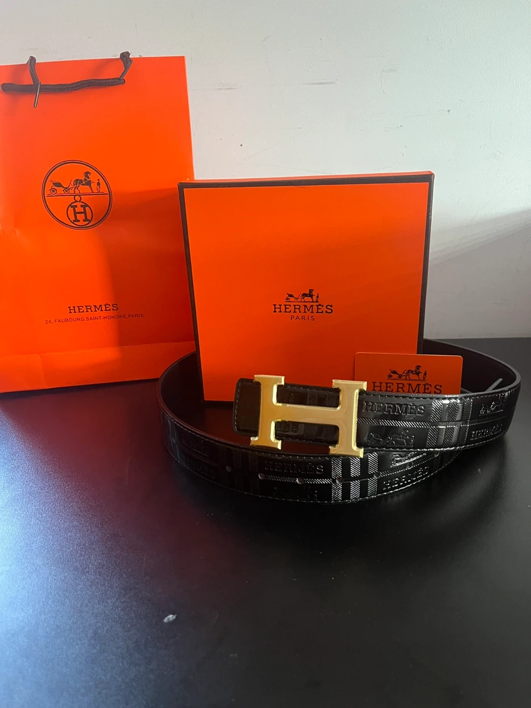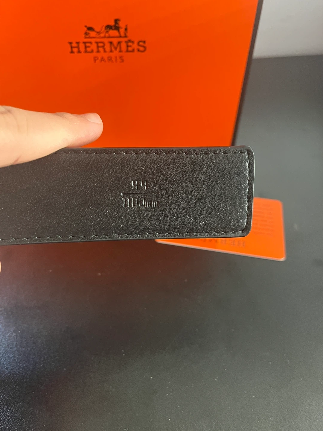 Selling a stylish Hermes black belt in size 44 (110cm). It comes with the original box and dust bag. The belt features the iconic 'H' buckle. Perfect for adding a touch of luxury to any outfit!