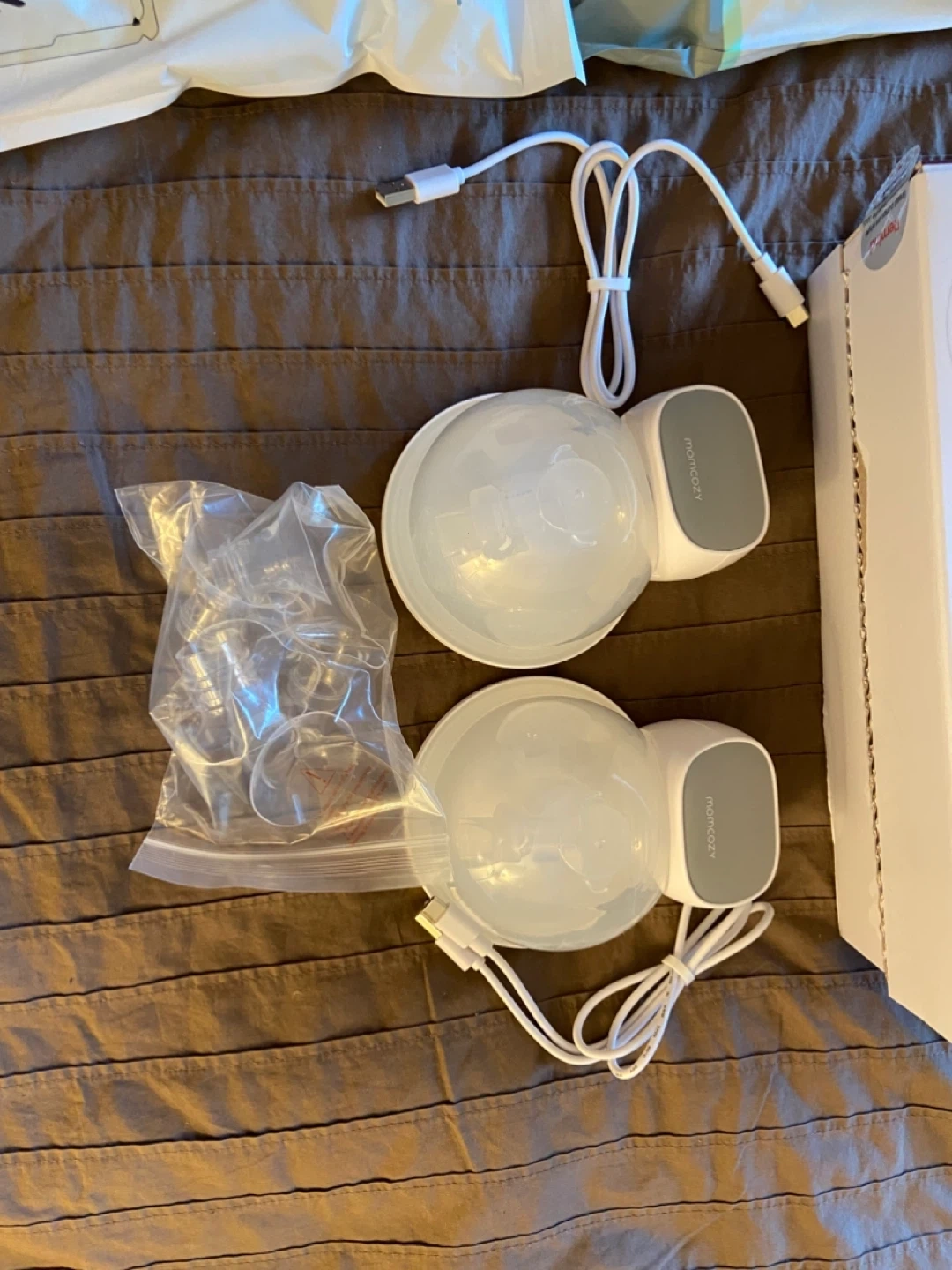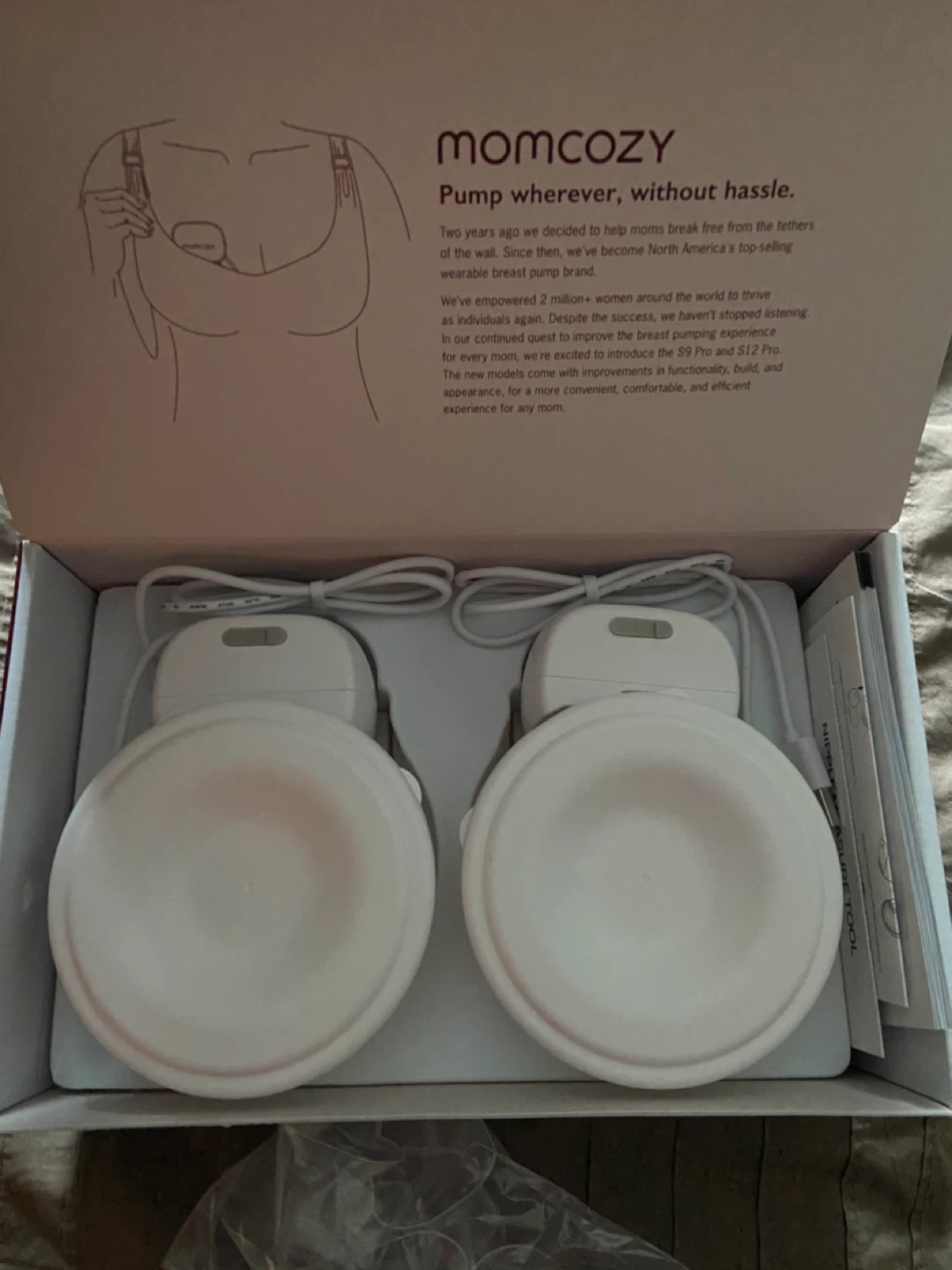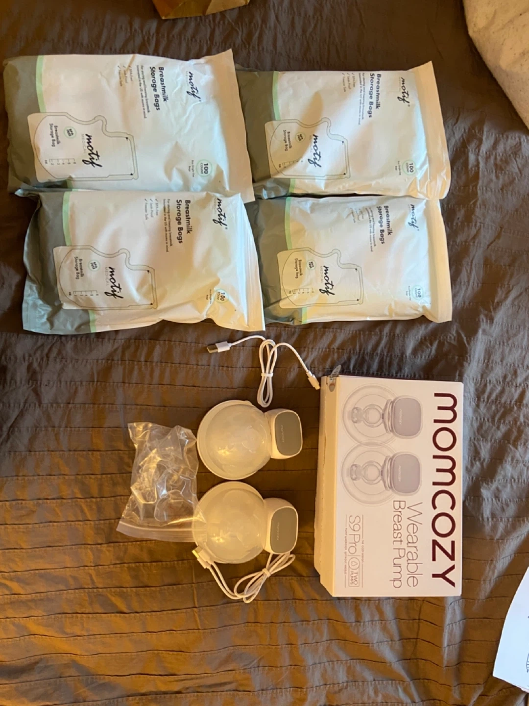 Selling a Momcozy S9 Pro Wearable Breast Pump, comes with the box and all original components! Also including 4 packs of Motif Breastmilk Storage Bags. Perfect for new moms!