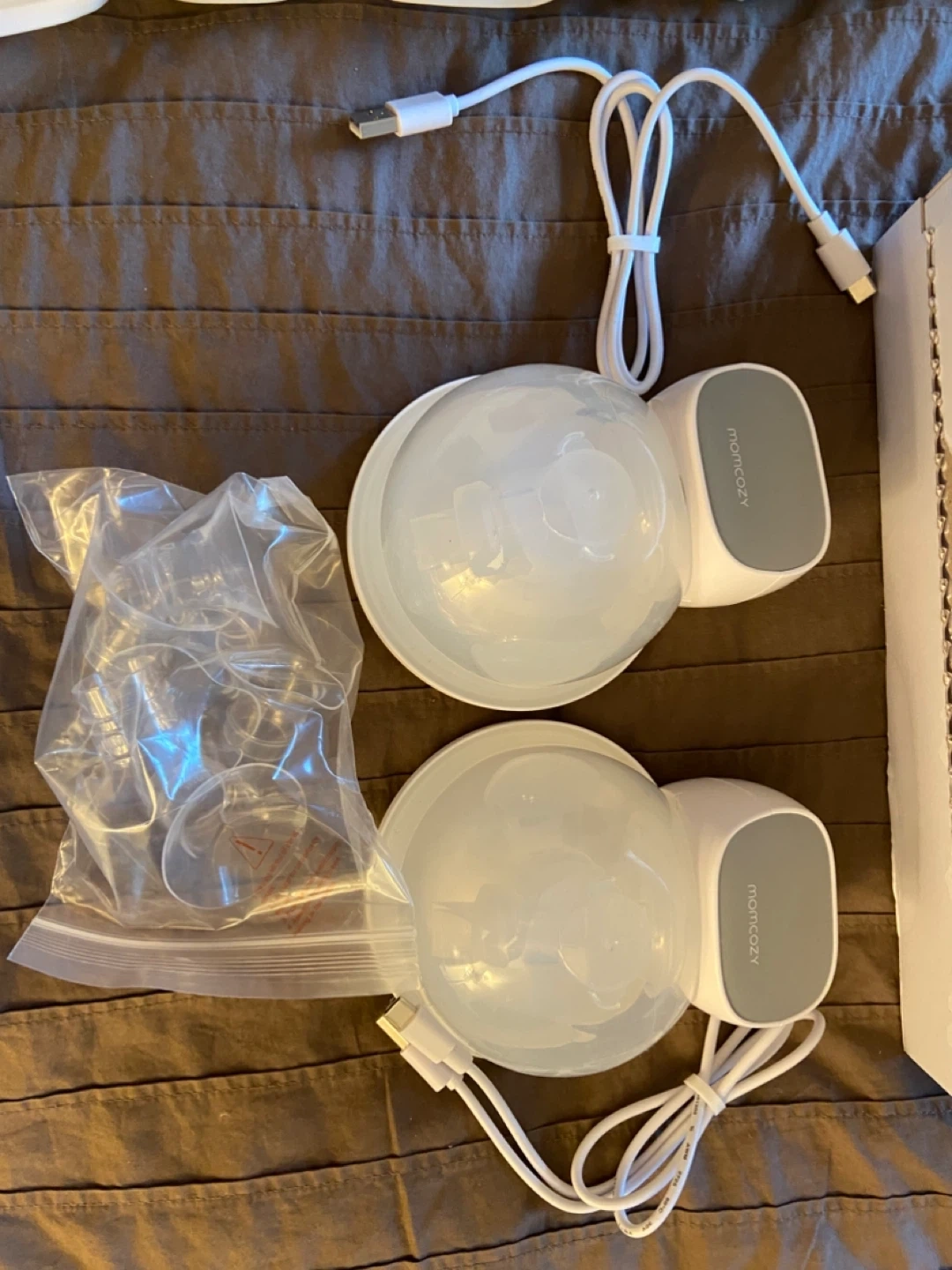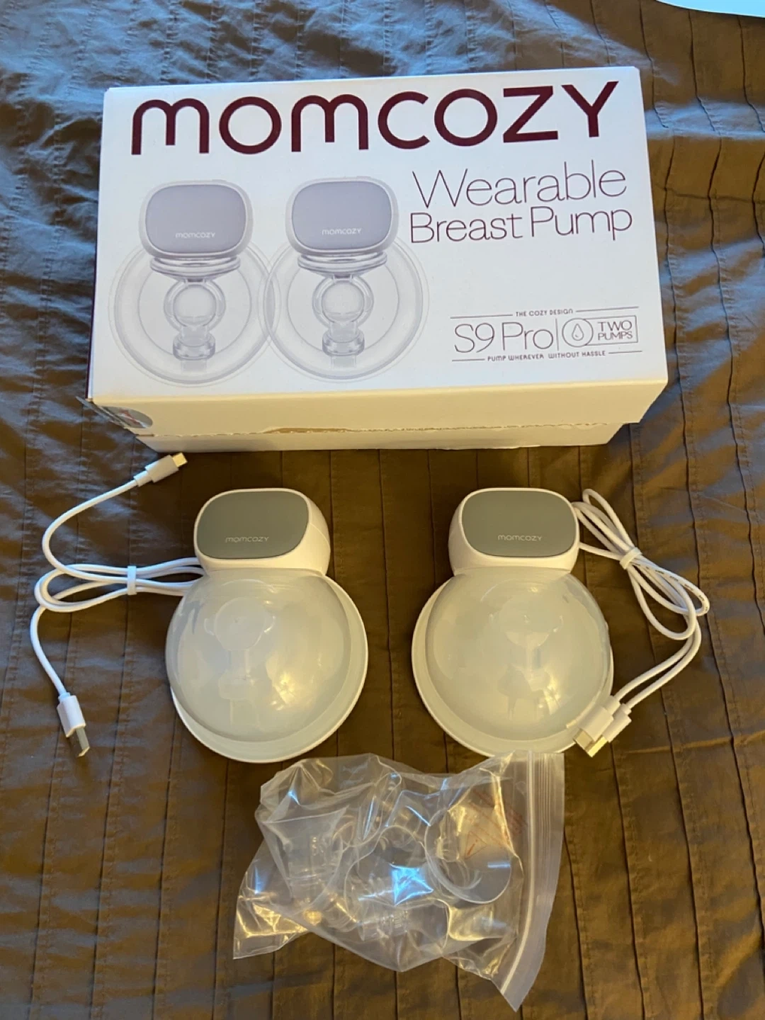 Selling a Momcozy S9 Pro Wearable Breast Pump, comes with the box and all original components! Also including 4 packs of Motif Breastmilk Storage Bags. Perfect for new moms!