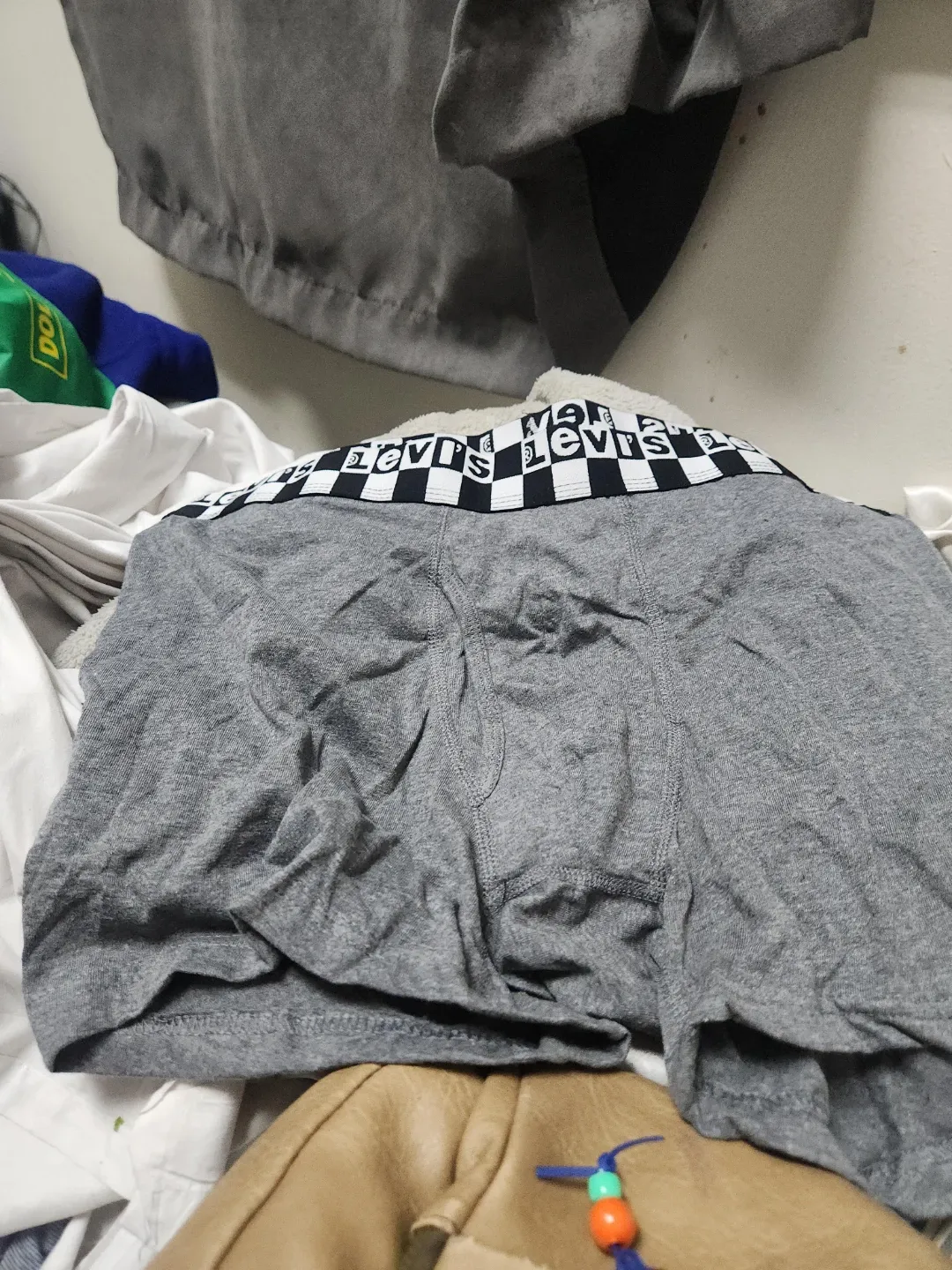 Levi's men's boxer briefs in grey, perfect for everyday wear! The waistband has the Levi's logo in a checkered design. Lr/X large