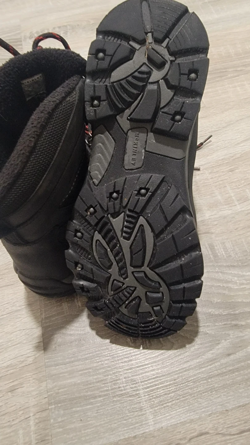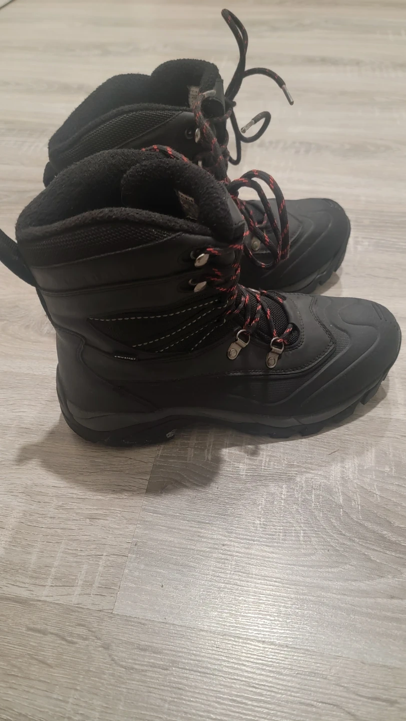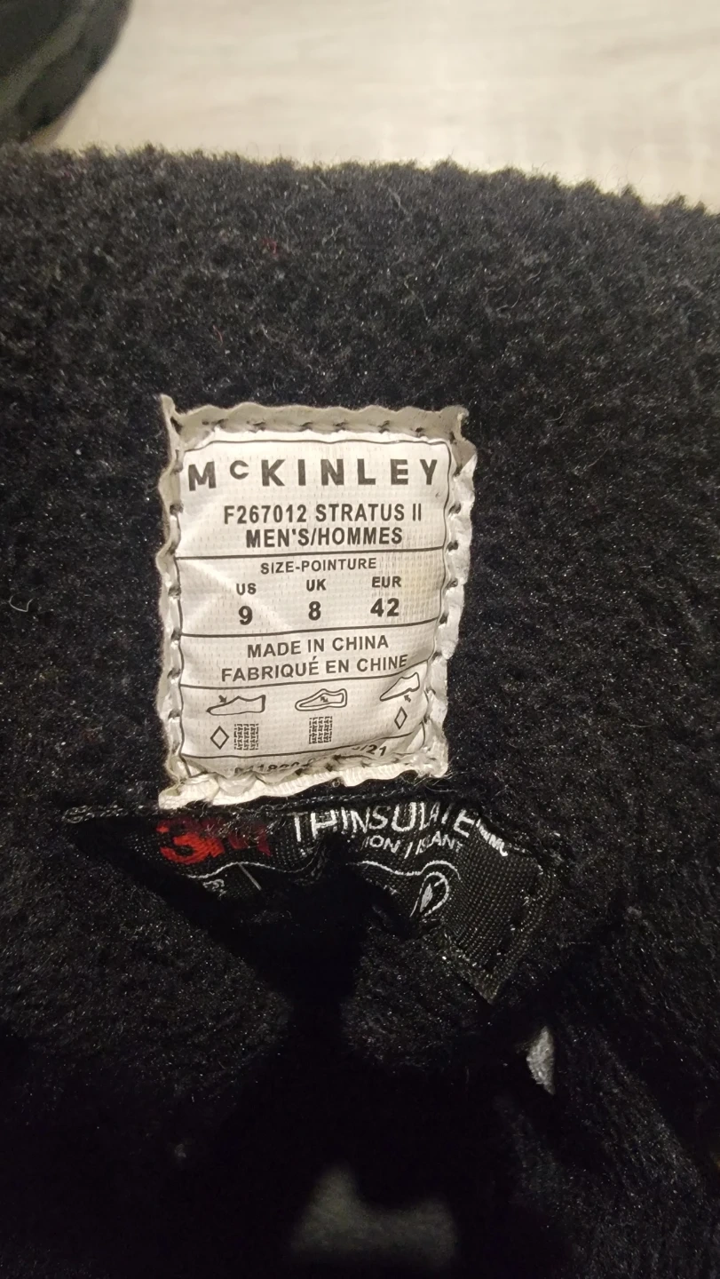 Selling a pair of McKinley Stratus II men's winter boots in size 9 (US). They're black and have red and black laces. The size is also listed as UK 8 and EUR 42. They're perfect for keeping your feet warm and dry this winter season!