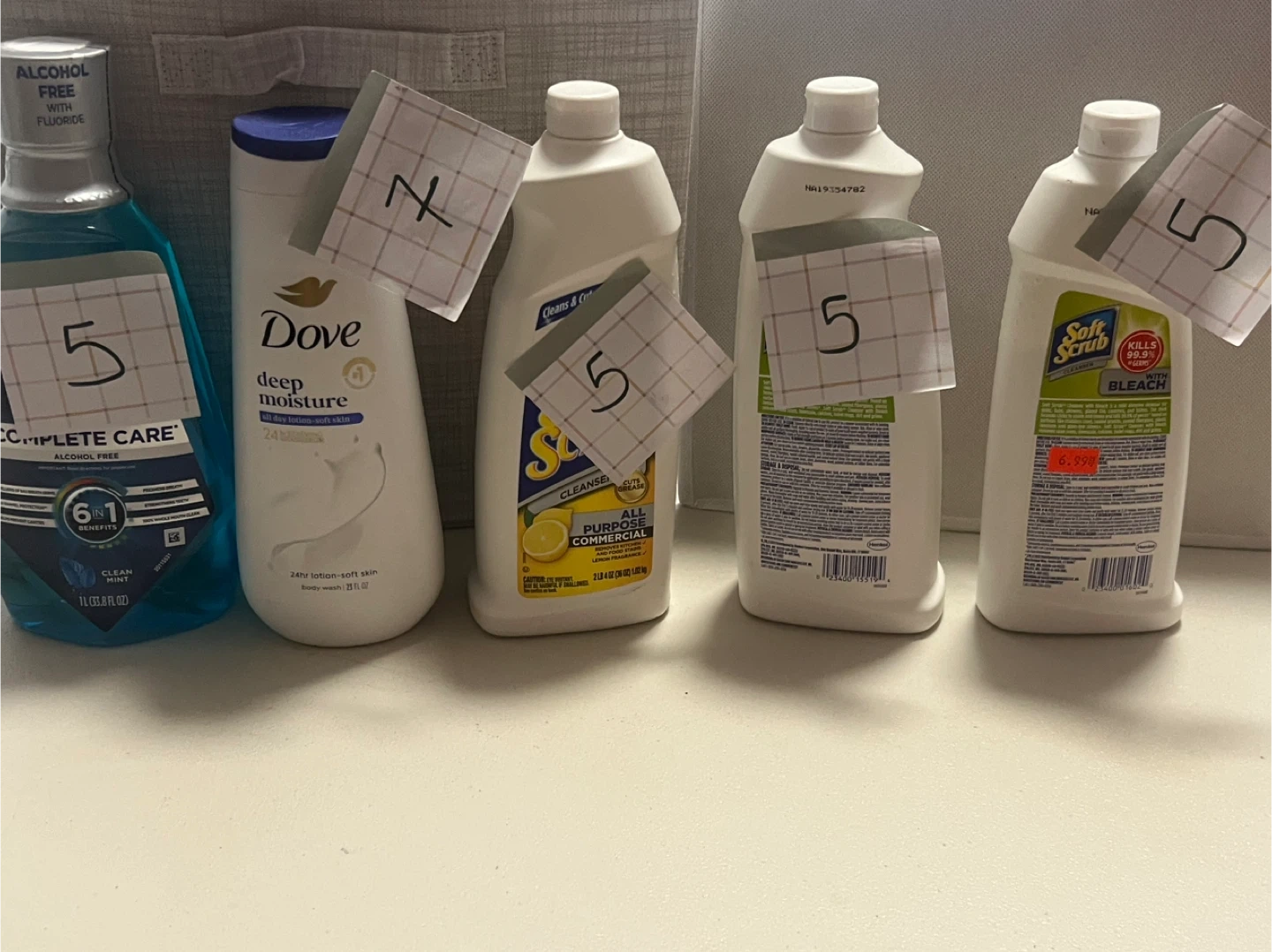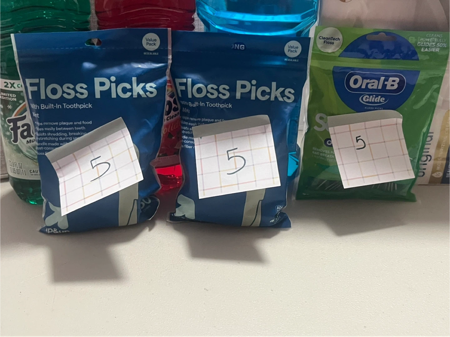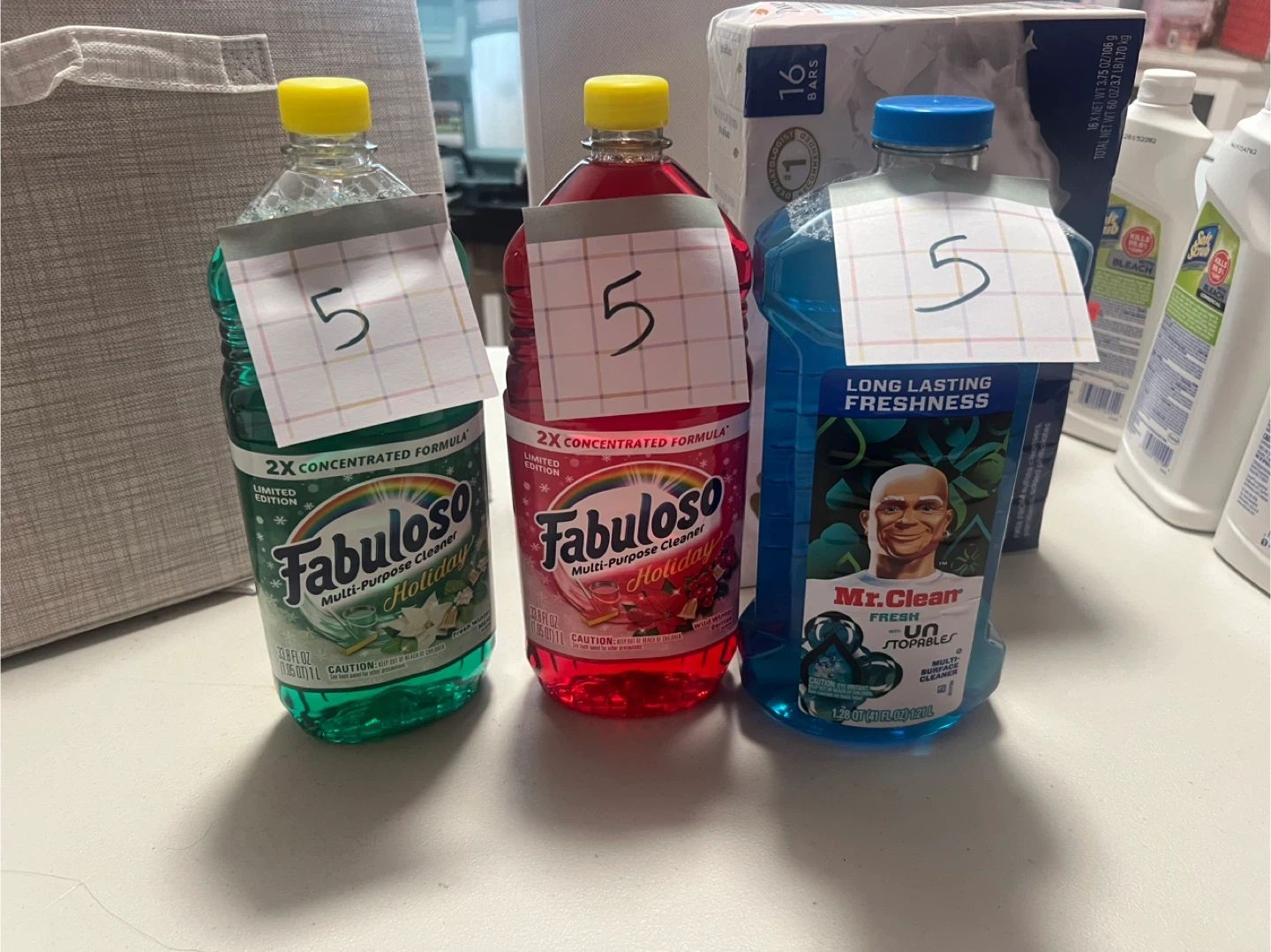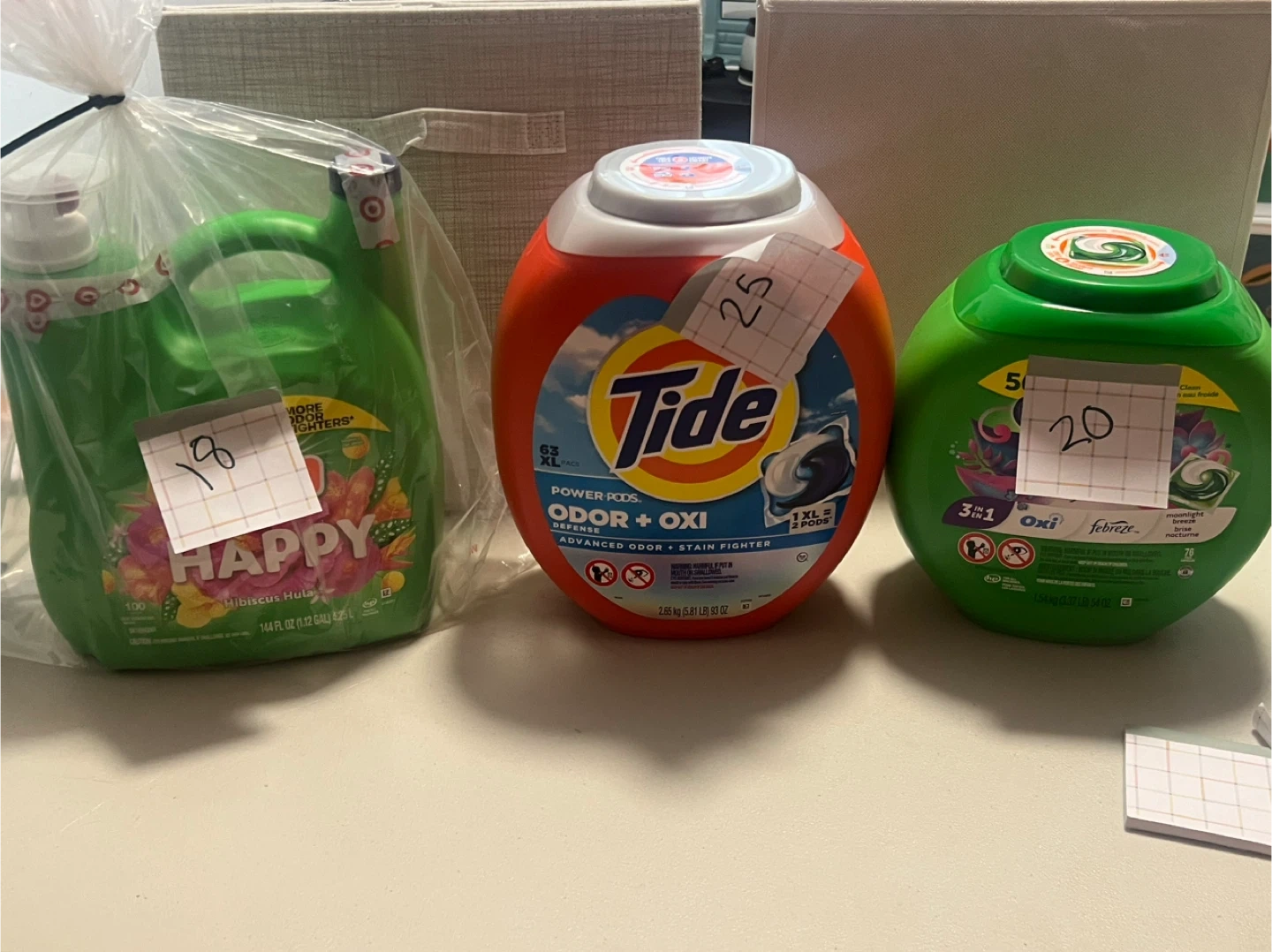 Selling a bundle of household cleaning and personal care items. Includes Fabuloso multi-purpose cleaner, Mr. Clean, Value Pack Floss Picks, Oral-B Glide Floss Picks, Huggies wipes, Dove soap, Crest mouthwash, and Pampers Splashers swim pants. All items are new